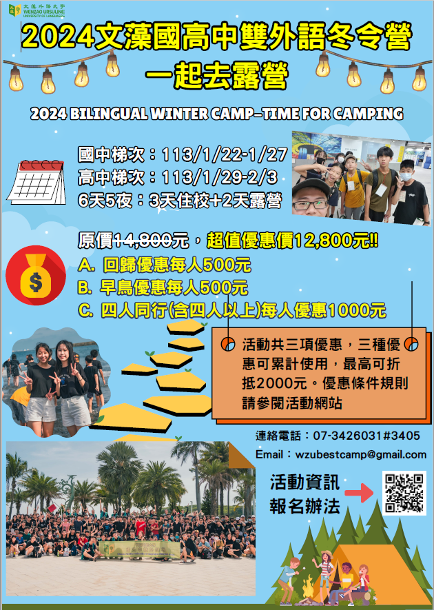 文藻學校財團法人文藻外語大學校辦理2024國中雙外語冬令營活動。