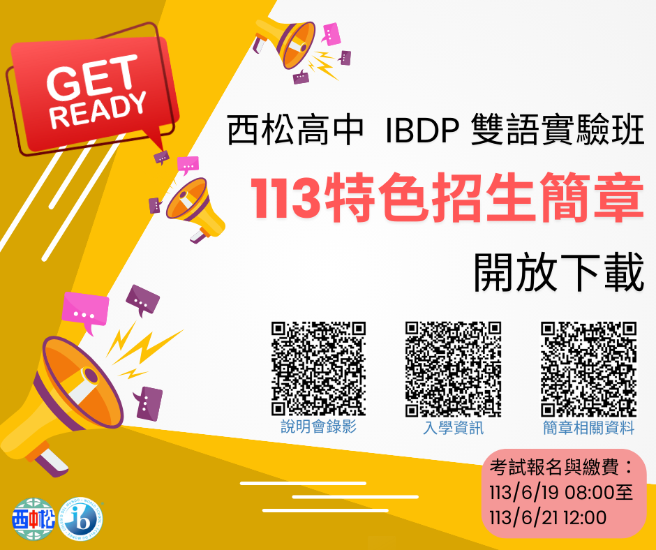 (一)西松高中113學年度「國際文憑IBDP雙語實驗班」特招簡 章相關資料:https://reurl.cc/1302dp