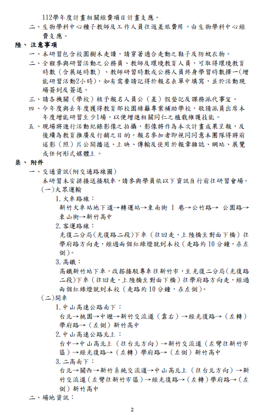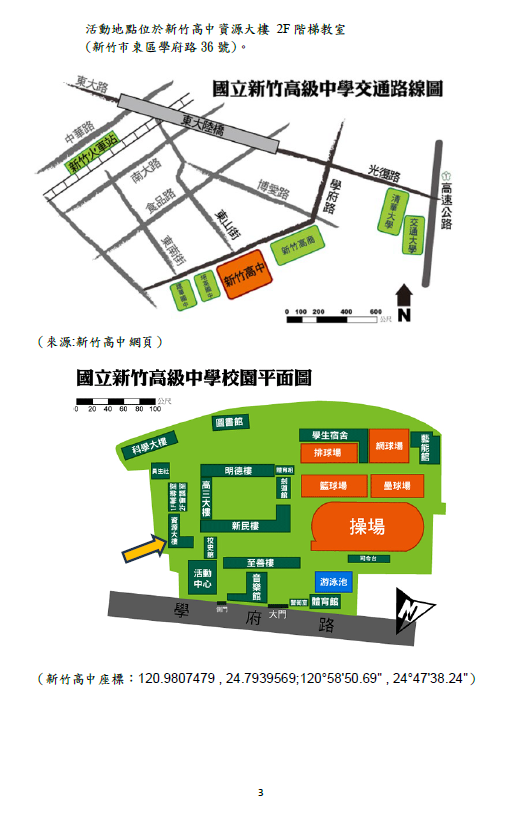 (二)辦理地點:國立新竹高級中學資源大樓2F階梯教室(新 竹市東區學府路36號)