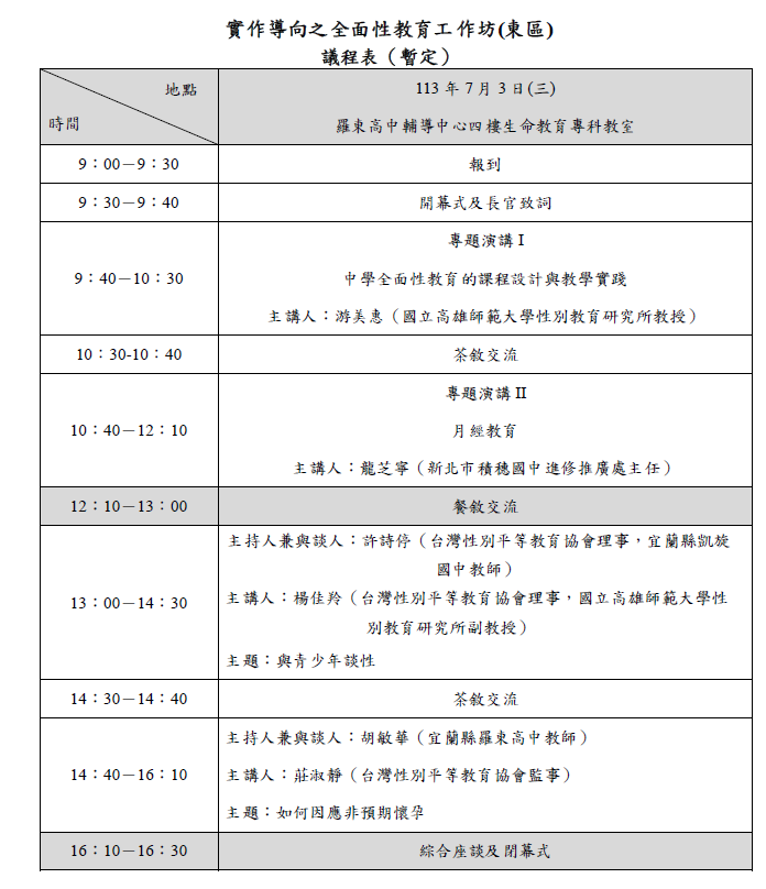 地點:國立羅東高級中學輔導中心四樓生命教育專科教室(宜蘭縣羅東鎮公正路 324號)