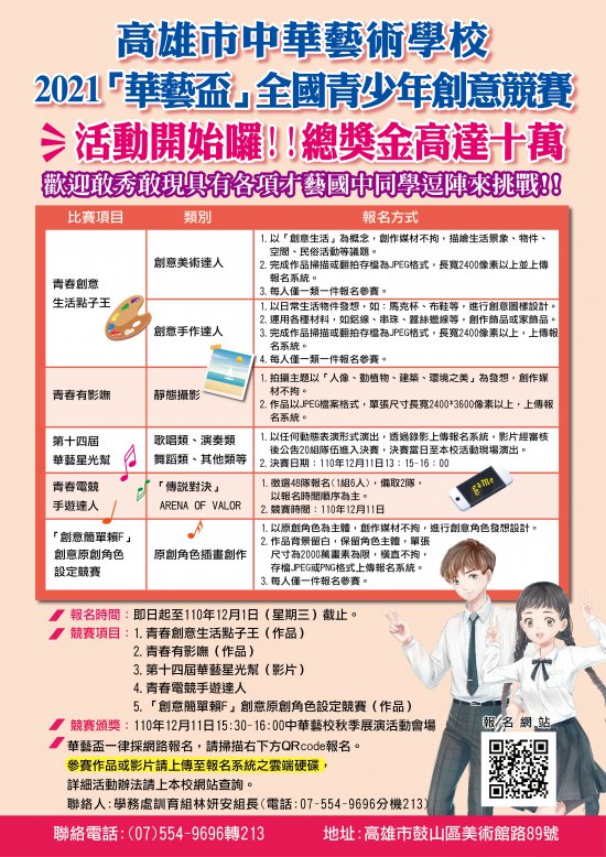四、【華藝星光幫才藝競賽】及【青春電競手遊達人】,競賽入圍活動會場參賽為110年12月11日(六)舉辦。