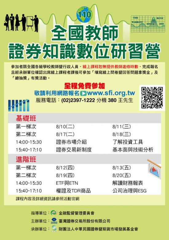函轉110年「全國教師證券知識數位研習營」活動訊息, 請教師踴躍參加。