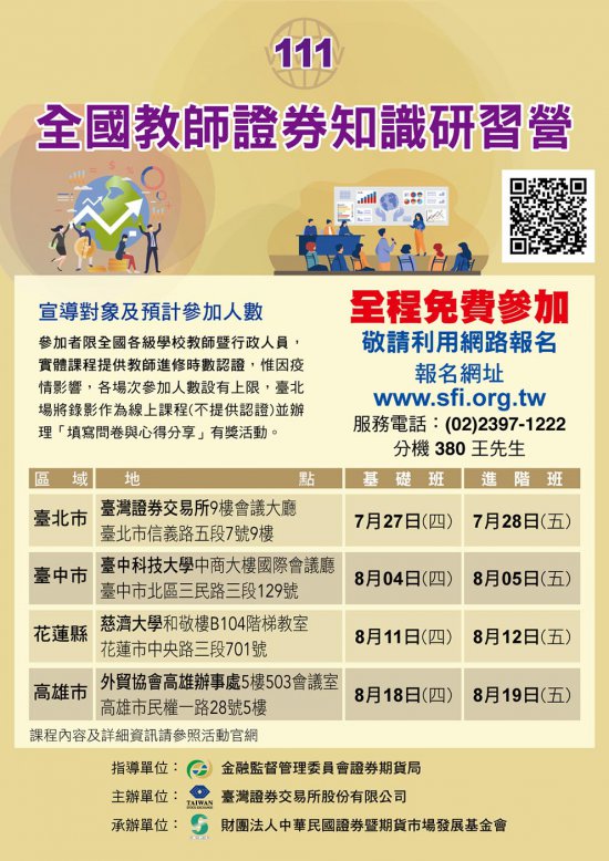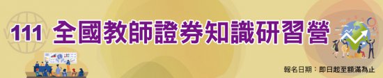 轉知111年「全國教師證券知識研習營」活動訊息,鼓勵教師暨行政人員參加。