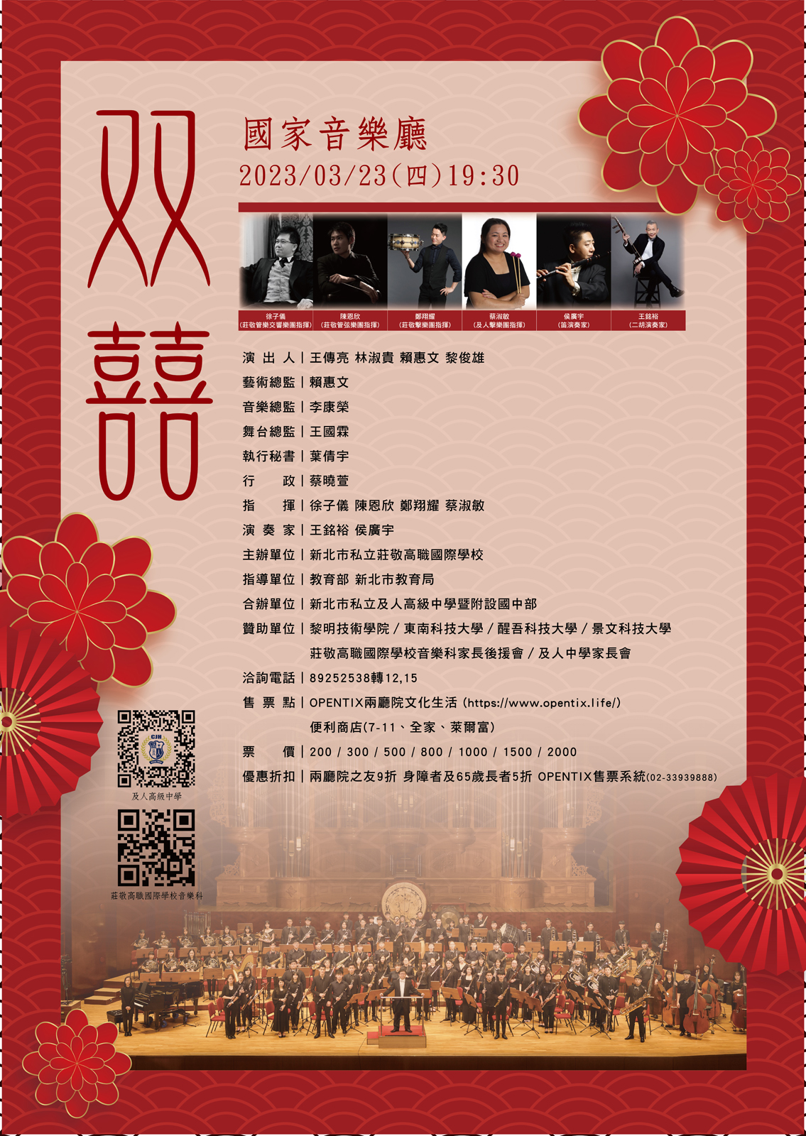 一、本校此次辦理音樂會活動,備有公關票,每校限取五張,歡迎有意者統一由校方索取,索票時間自2月25日起至3月10日止。