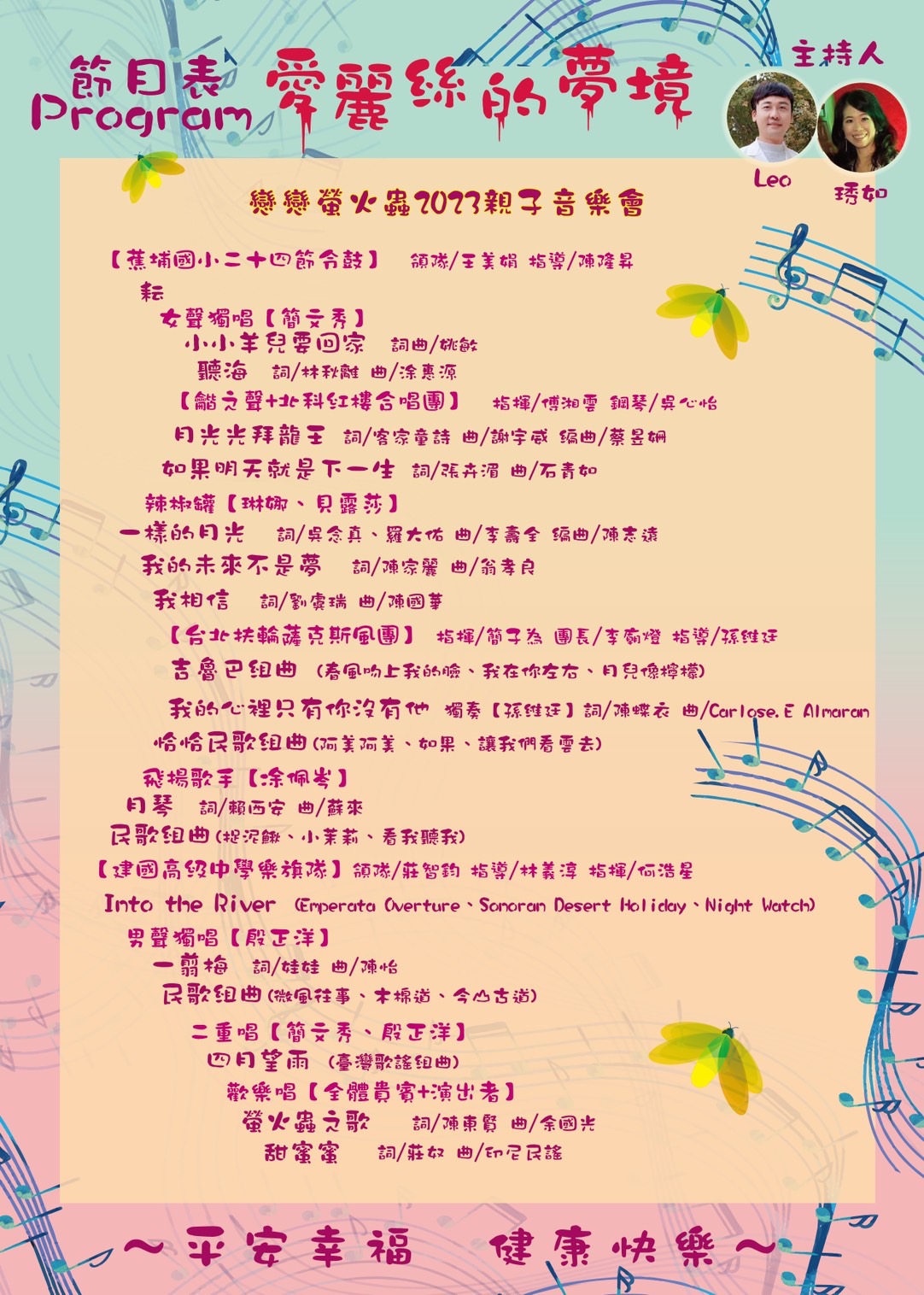 愛麗絲的夢境戀戀螢火蟲2023親子音樂會將於4月29日下午16時00分至18時00分於大安森林公園露天音樂台舉辦,邀請您共享午後時光!