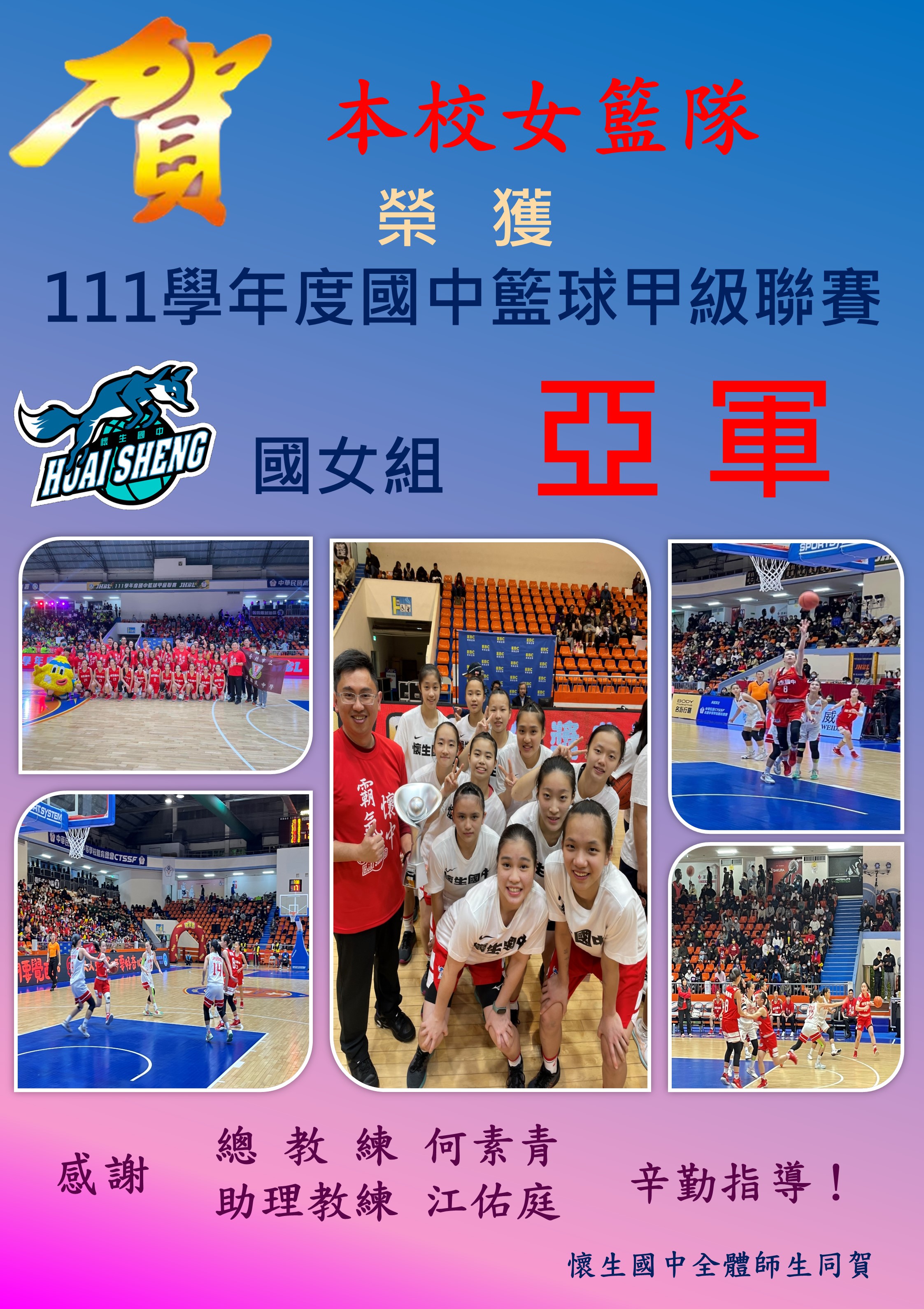 狂賀!本校女籃隊榮獲111學年度國中籃球甲級聯賽國女組亞軍。