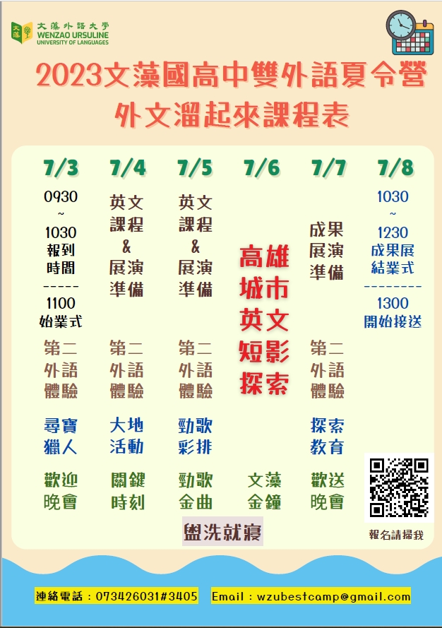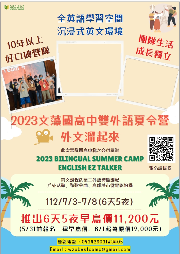 文藻學校財團法人文藻外語大學辦理2023文藻國高中雙外語夏令營。