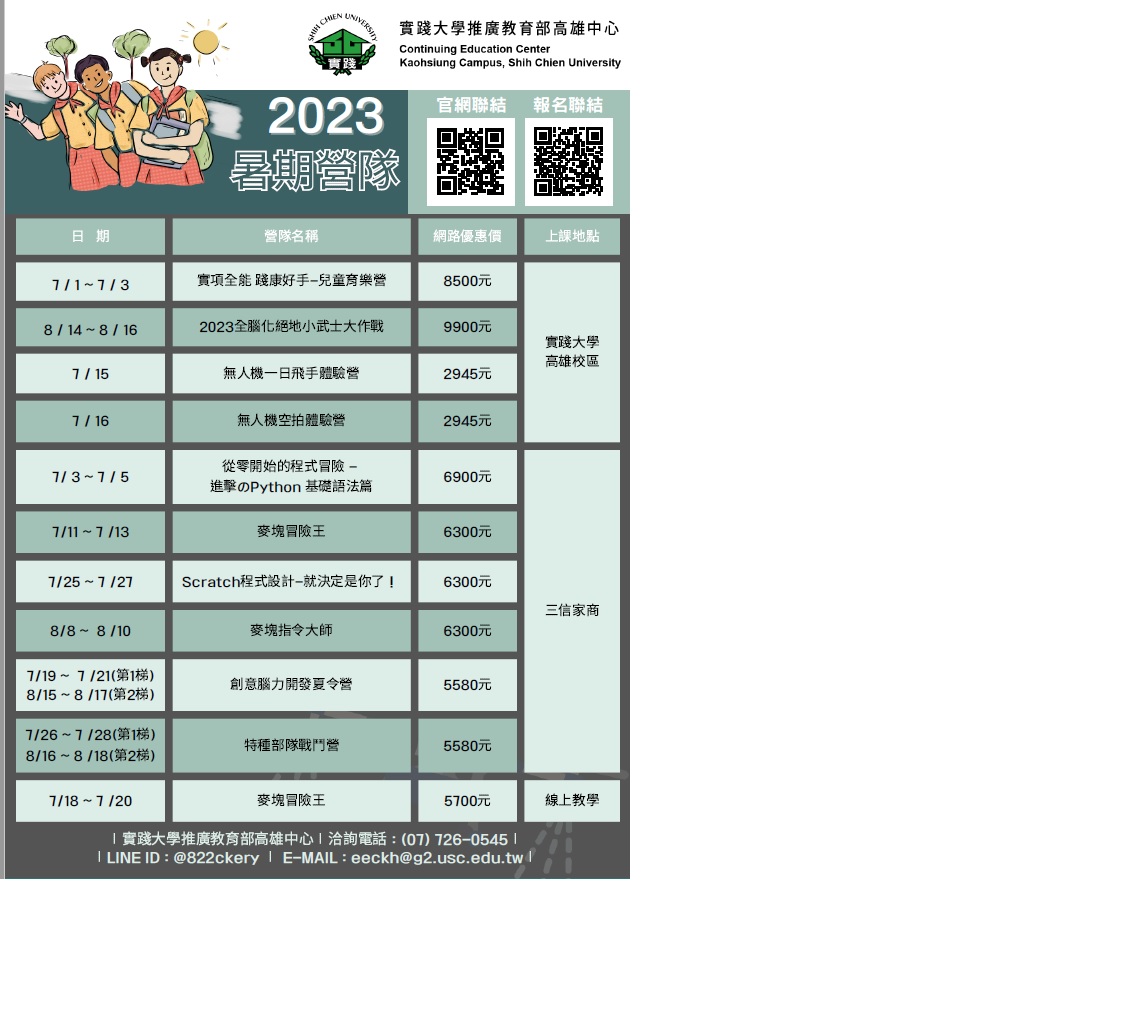 一、旨揭活動時間、內容詳如附件,或參見官方網站,連結如 下:https://eec.kh.usc.edu.tw/p/404-1040-44002.php