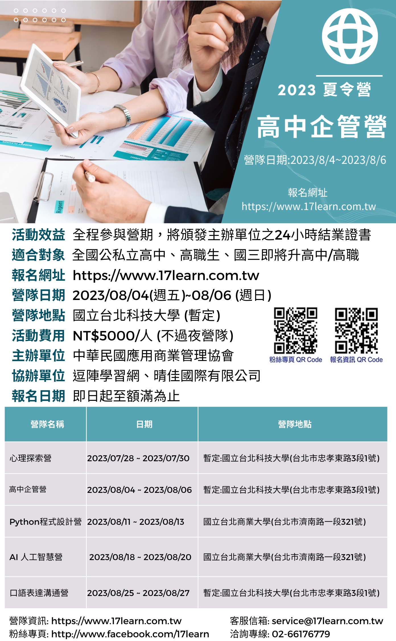 四、報名網址及營隊詳細說明: https://www.17learn.com.tw
