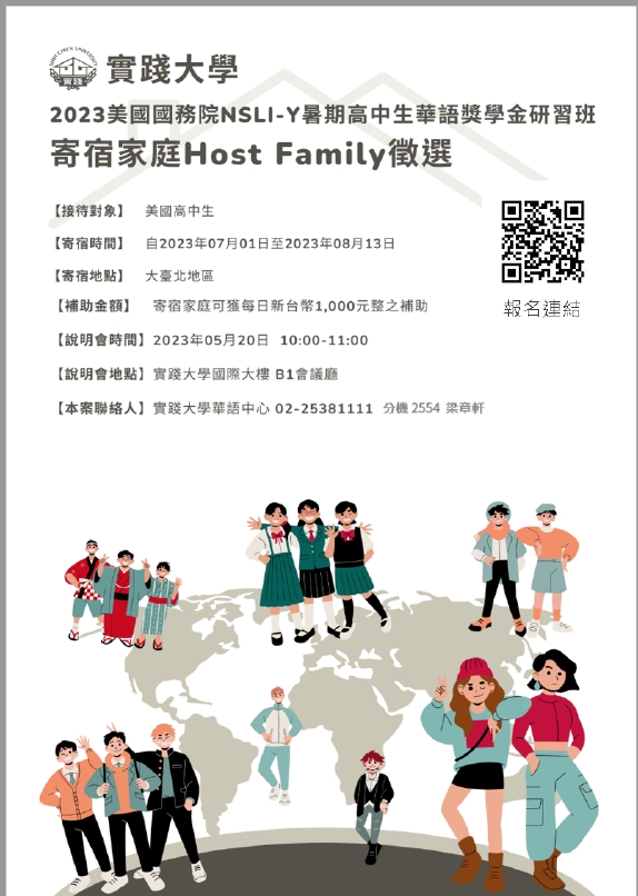 二、為增進學員在臺修讀華語課程期間與當地居民進行文化交流,並培養其於日常生活中運用華語之能力,故徵求對美國文化感興趣且願意提供學員住宿接待之臺灣家庭。