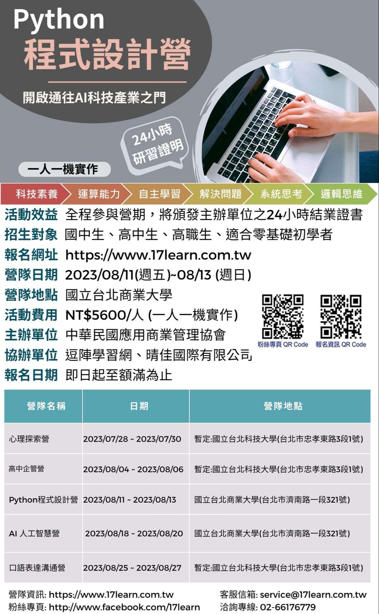 七、報名網址及營隊詳細說明:https://www.17learn.com.tw