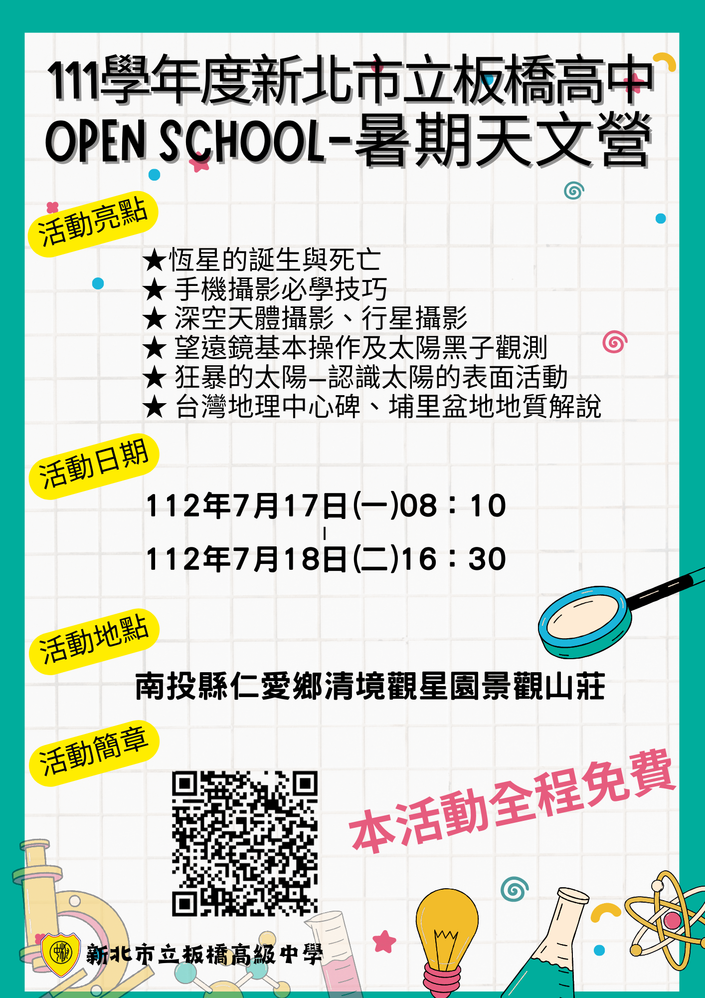 二、活動時間:112年7月17日(一) 8:10~7月18日(二)16:30。