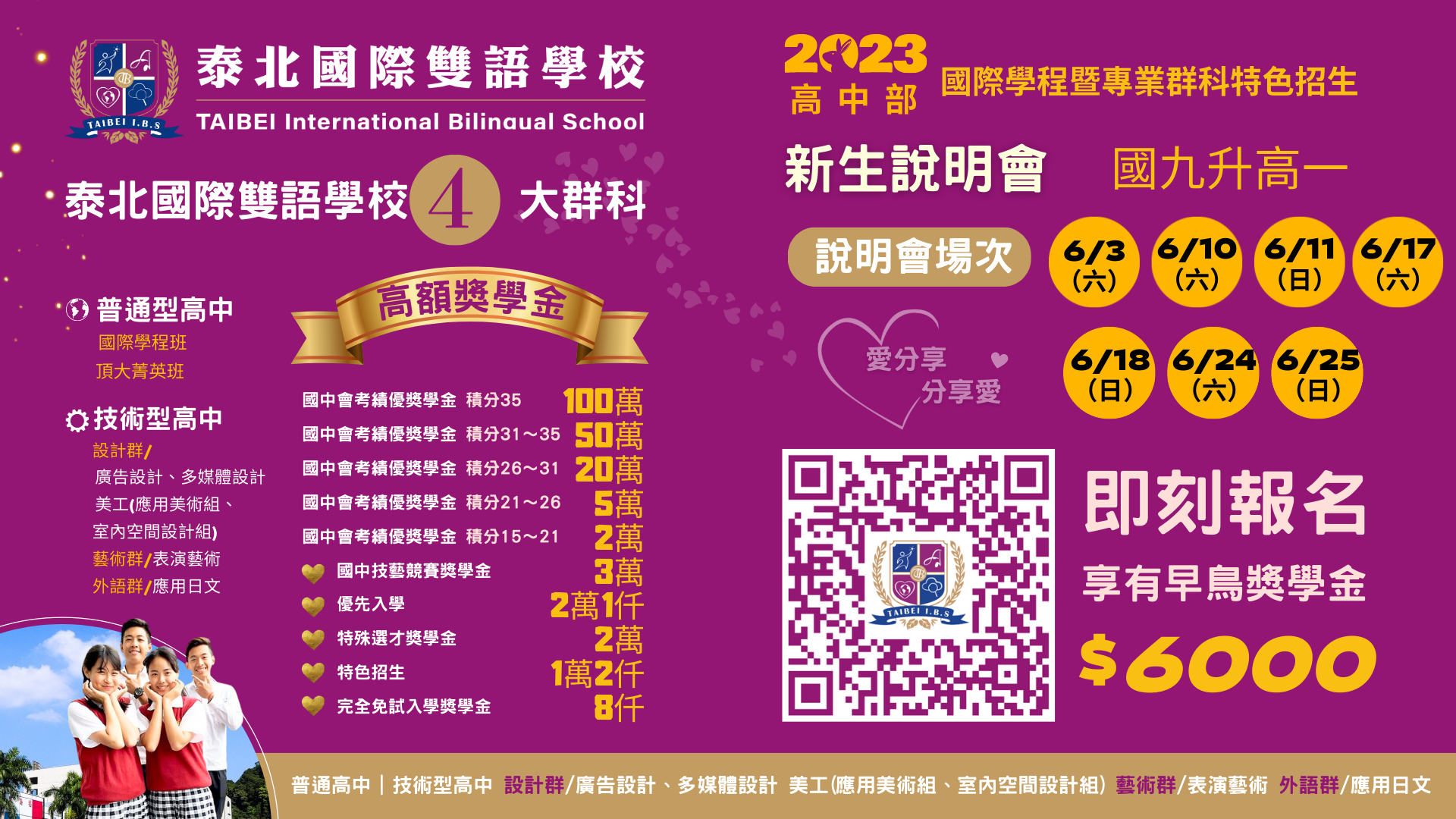 一、為逐步落實「免試入學、適性發展」政策,以紓緩學生升學壓力,引導國中生適性發展,特辦理免試入學說明會推廣之。6月30日前完成入學手續,享有6000元早鳥獎勵。