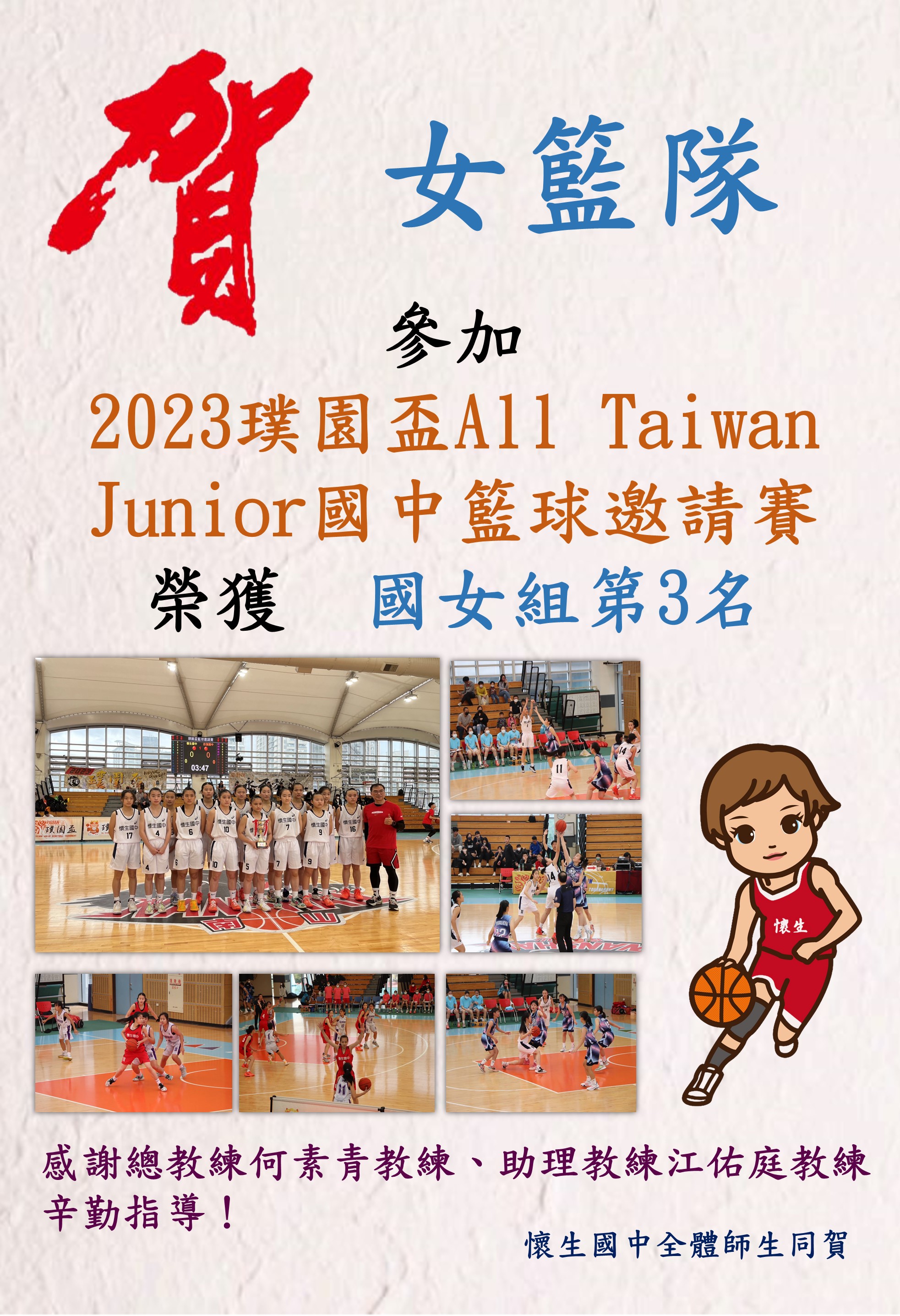 賀!本校女籃隊獲2023樸園盃All Taiwan Junior 國中籃球邀請賽國女組第3名!