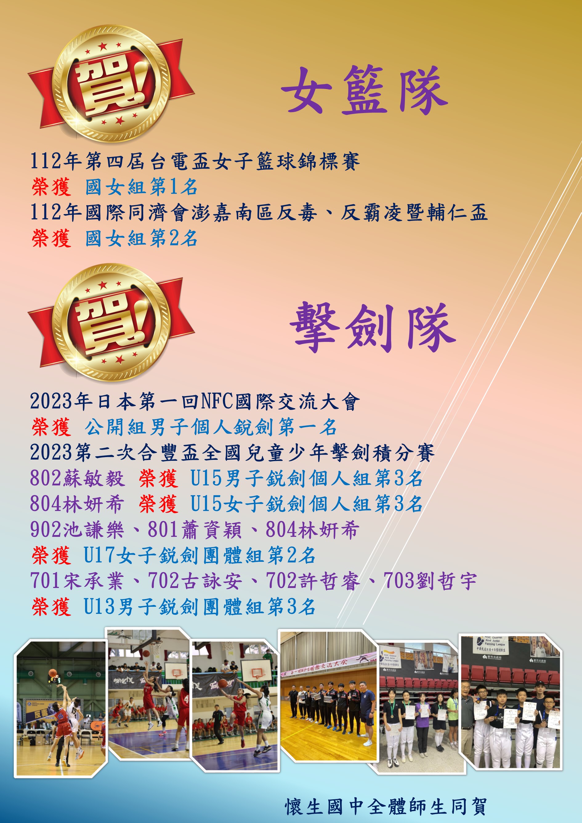 榮獲 U17女子鋭劍團體組第2名 701宋承業、702古詠安、702許哲睿、703劉哲宇