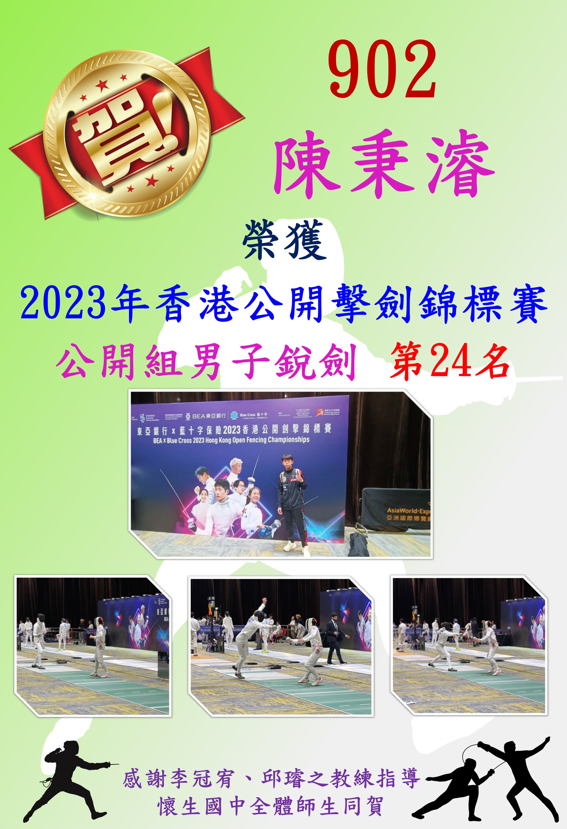 賀!902 陳秉濬 參加『2023年香港公開擊劍錦標賽』