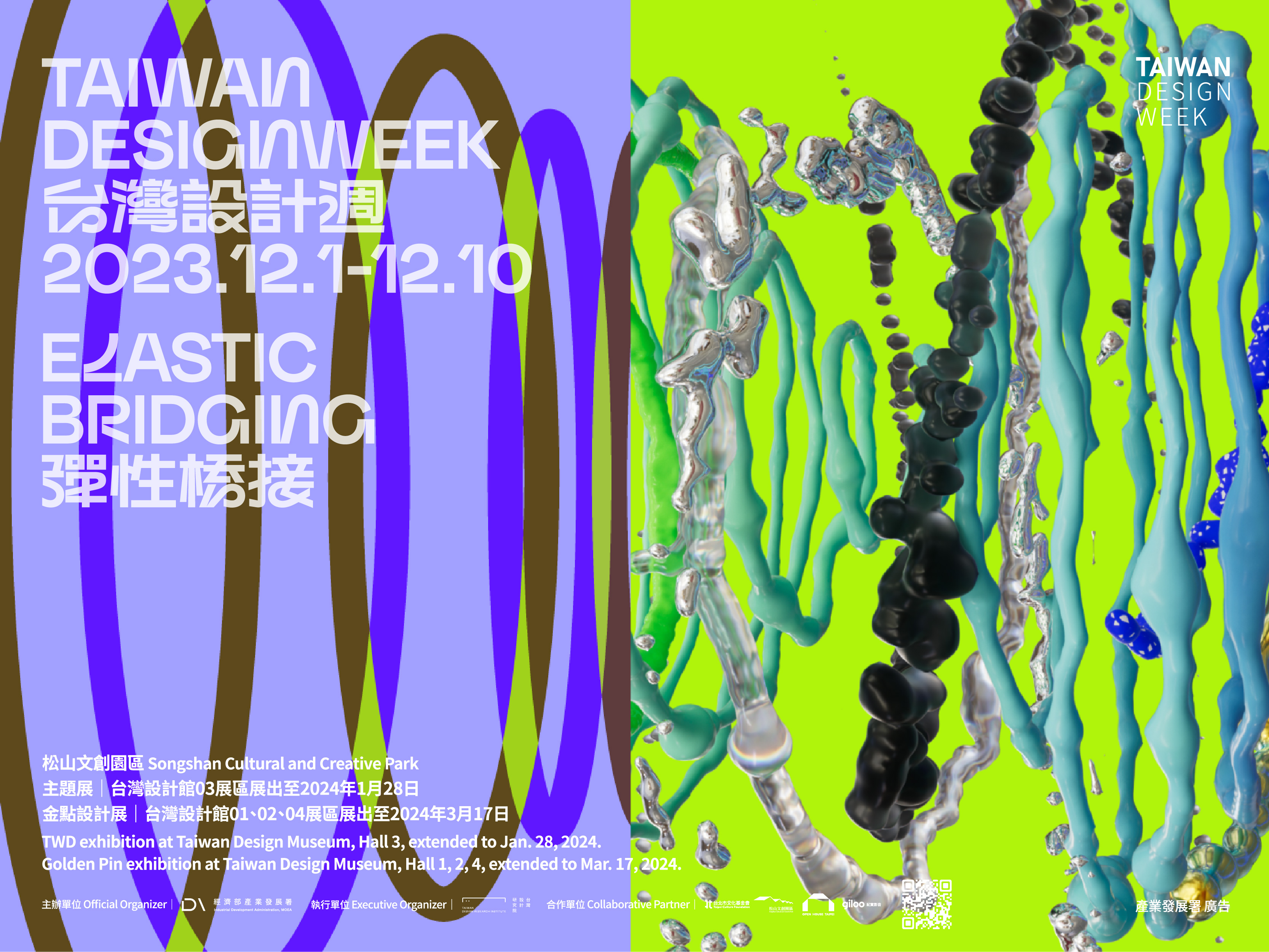 三、「台灣設計週主題展」以「彈性橋接」為題,展期自即日起至明年1月28日止,邀請54組在地頂尖團隊,涵蓋數位媒 體、平面設計、產品包裝、材料應用、自然創作、食物設 計、公共美學等領域,展現台灣團隊透過跨界的整合應變能力,碰撞出精彩作品。