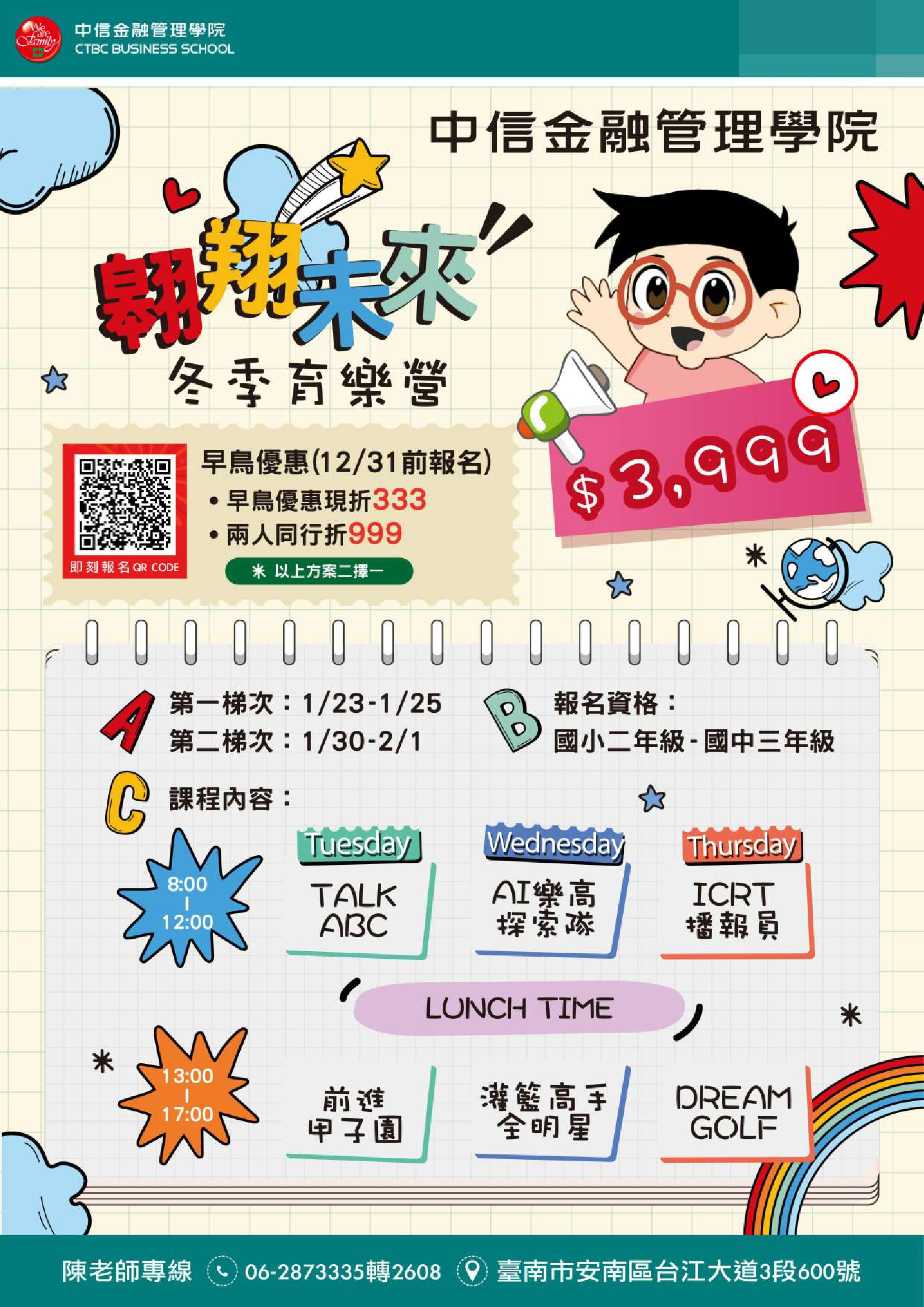 四、課程地點:中信金融管理學院(安南區台江大道三段600 號)。