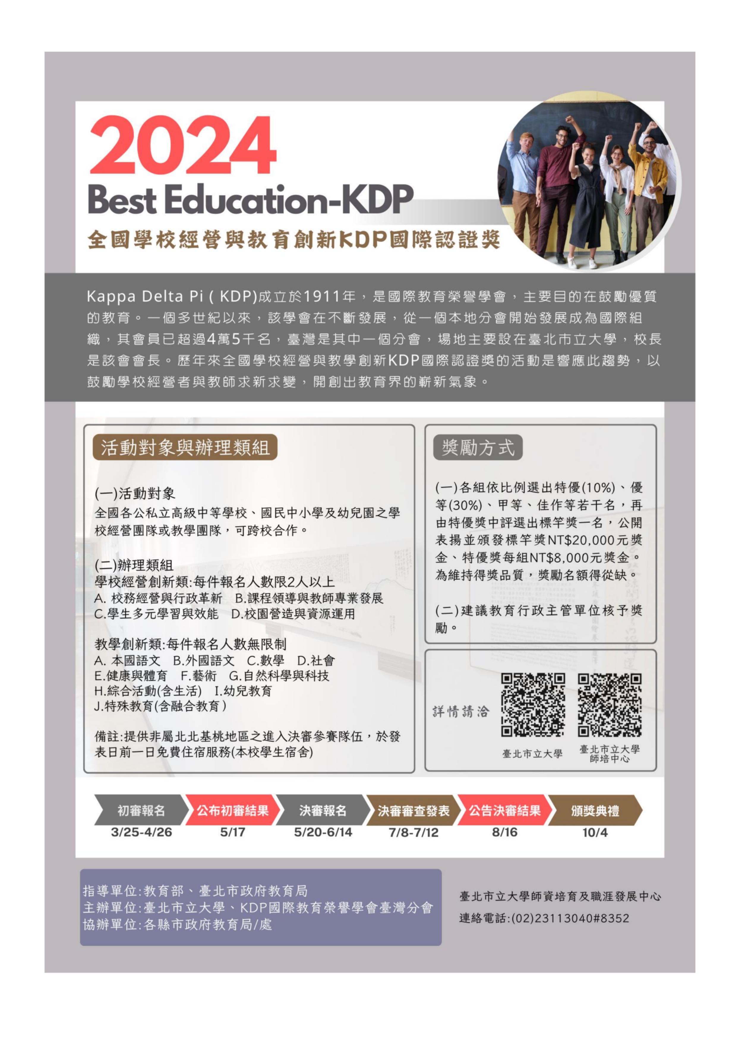 轉知「2024KDP全國學校經營與教學創新國際認證獎」活動