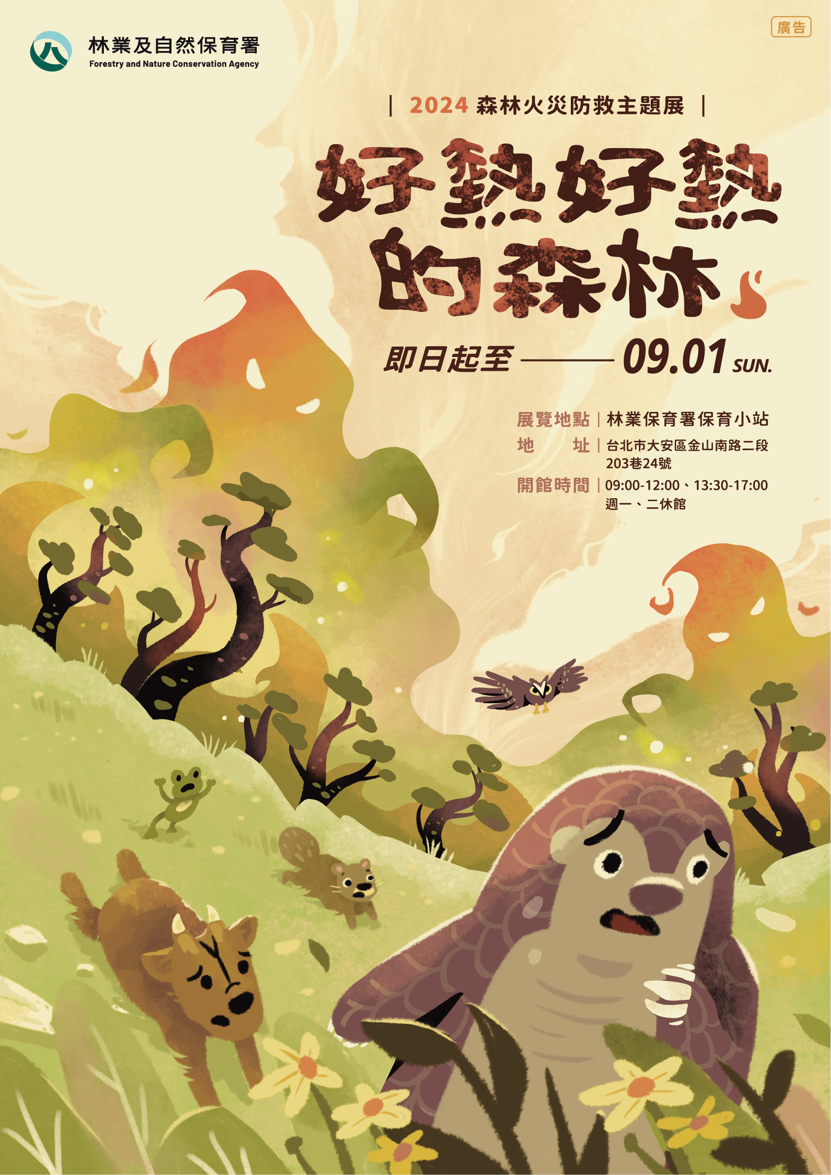 森林火災防救主題展,展期至113年9月1日止,並搭配每月相關主題活動,透過靜態展覽與動態活動結合,讓民眾體認到森林火災防救及維護森林資源的重要性。