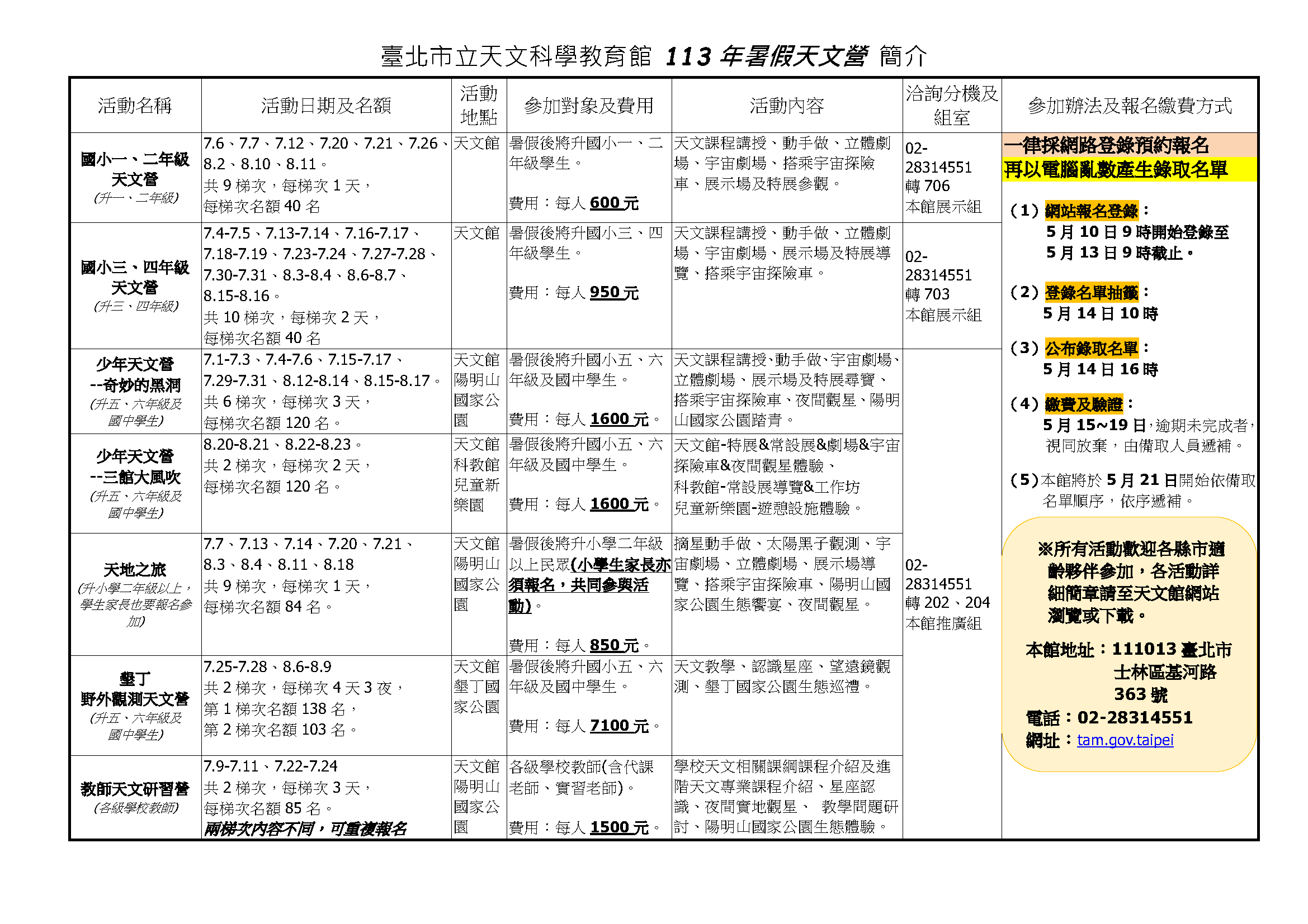 說明:本活動內容有助於師生進修天文知識,請踴躍報名參加。