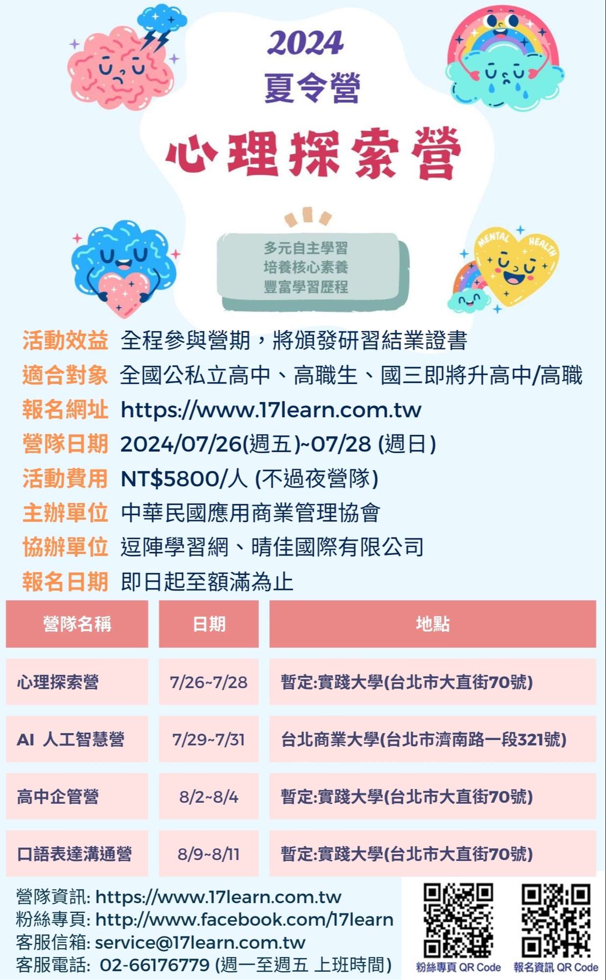 九、營隊訊息及報名網址: https://www.17learn.com.tw