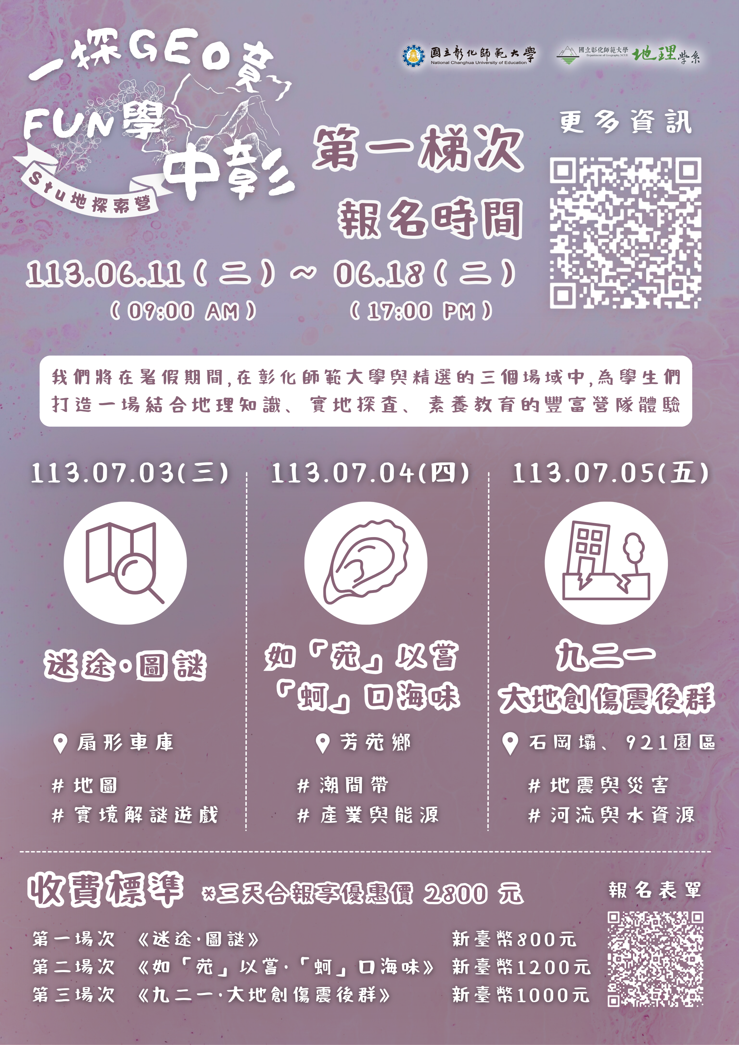 (一)第一梯次:113年07月03日至113年07月05日(星期三、 四、五)