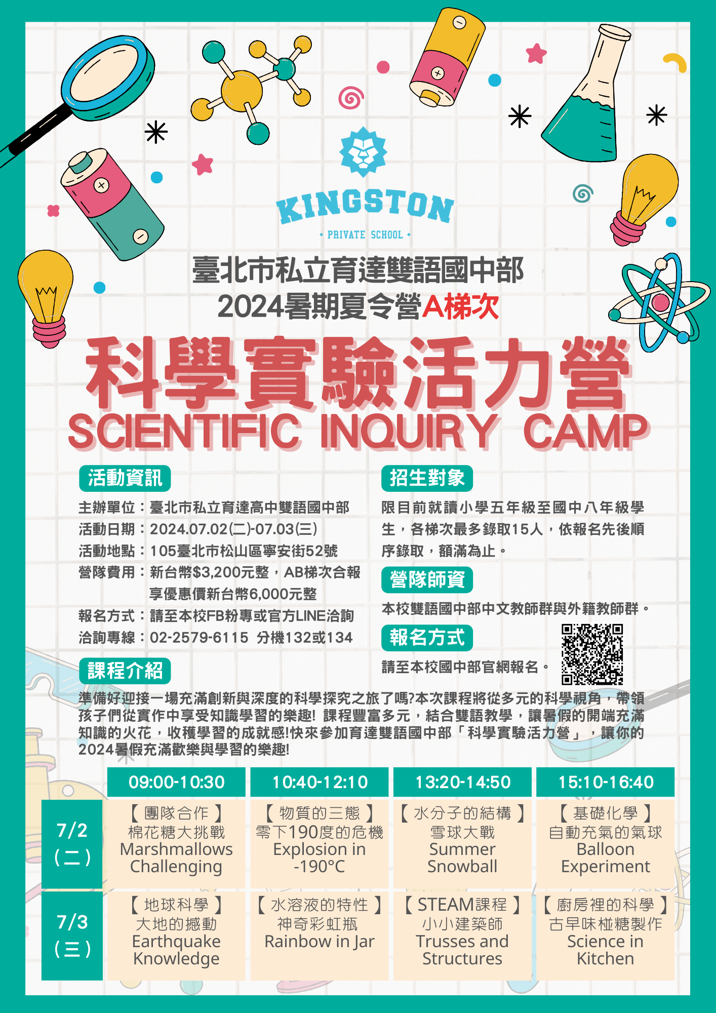 私立育達高級中等學校雙語國中部辦理2024暑假「科學實驗活力營」及「文 化饗宴實作營」