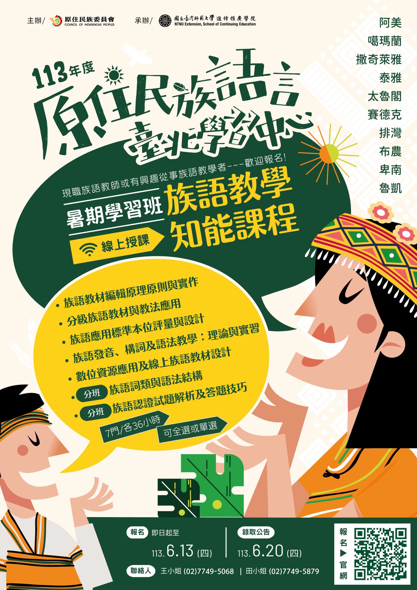 【轉知】113年度暑期原住民「教學知能課程學習班」招生