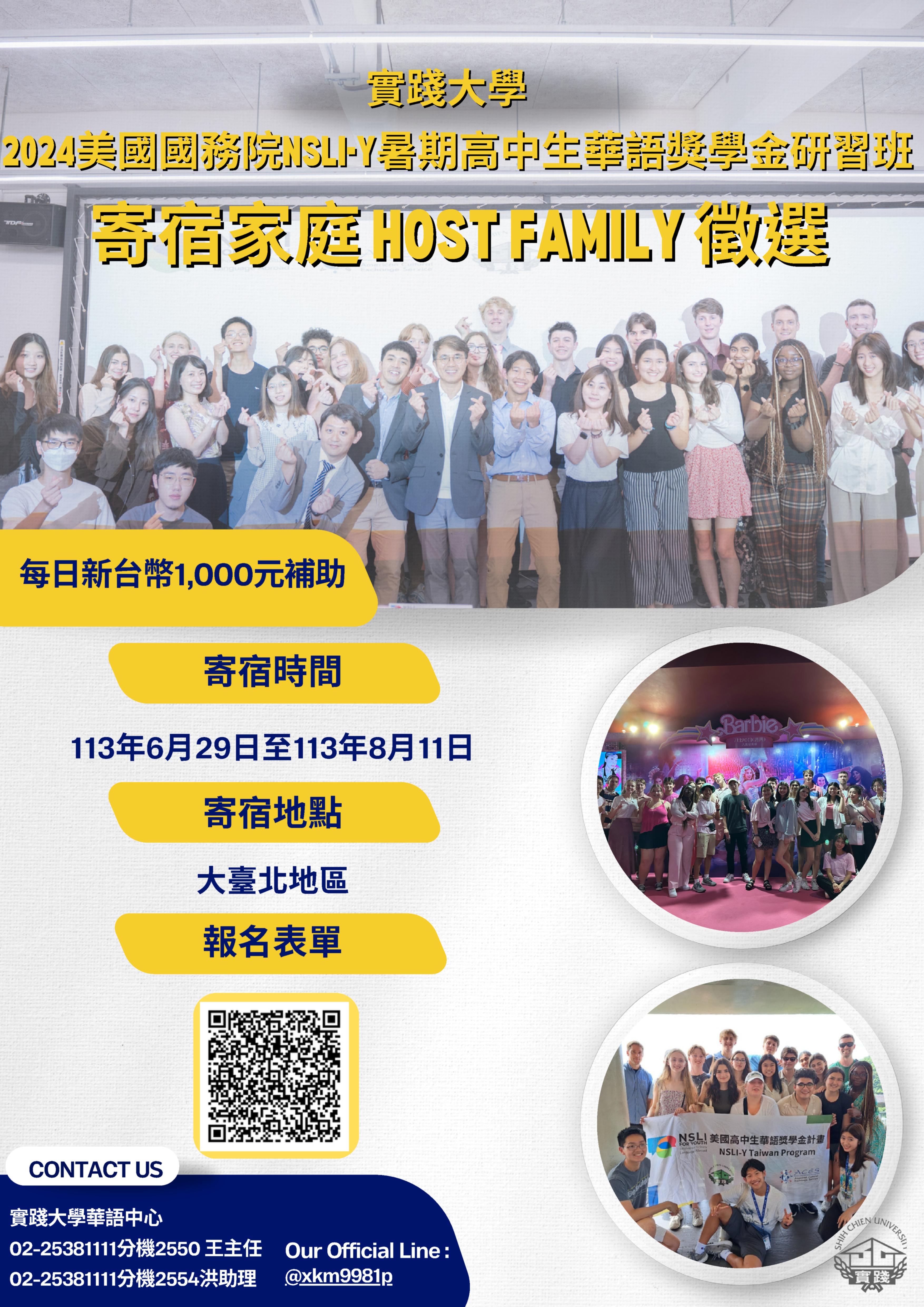 四、若有意願提供寄宿家庭者,請直接填寫報名表單 (https://forms.gle/qyfvZJi1SvLVLKJV8),完成報名 後,本校承辦單位將實地走訪接待住宿地點,再另行通知錄取名單。
