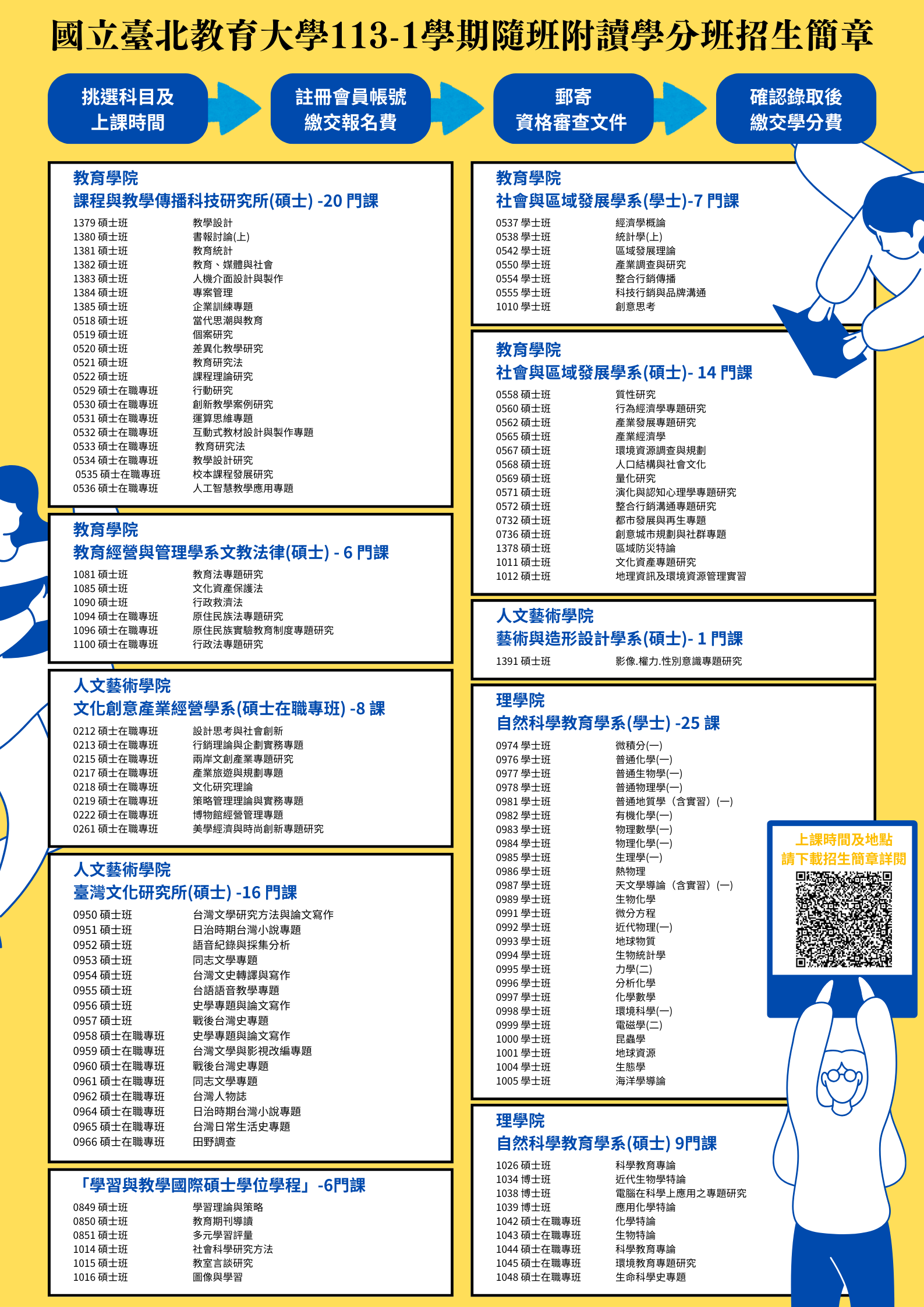 【轉知】國立臺北教育大學學士班、碩士班、學位學程招生