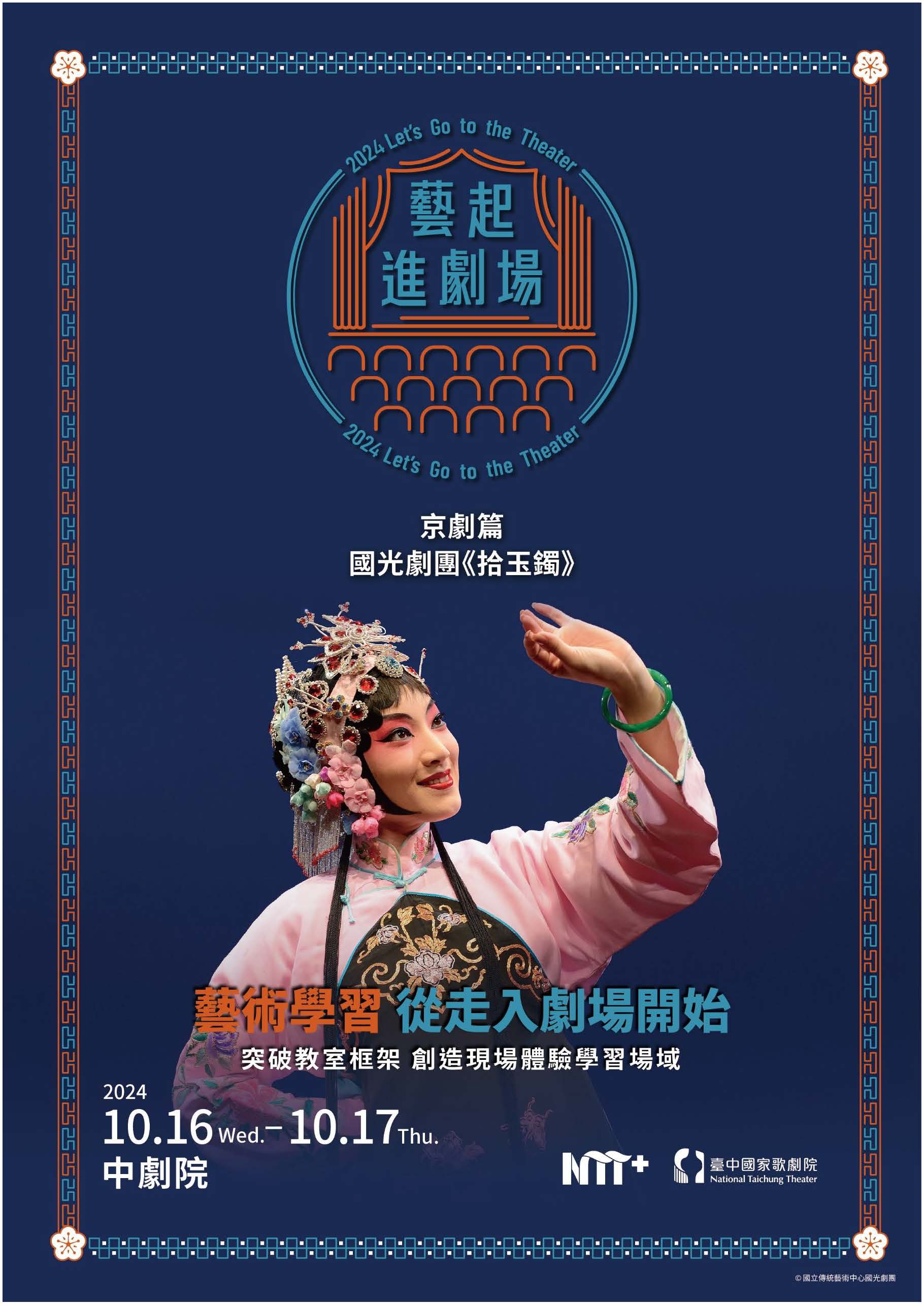 二、本活動邀請國立傳統藝術中心國光劇團以經典劇目《拾玉 鐲》為示範演出節目,透過專業解說及互動教學帶領學生 認識京劇及其角色行當與技巧,啟發學生表演藝術之多元 想像。