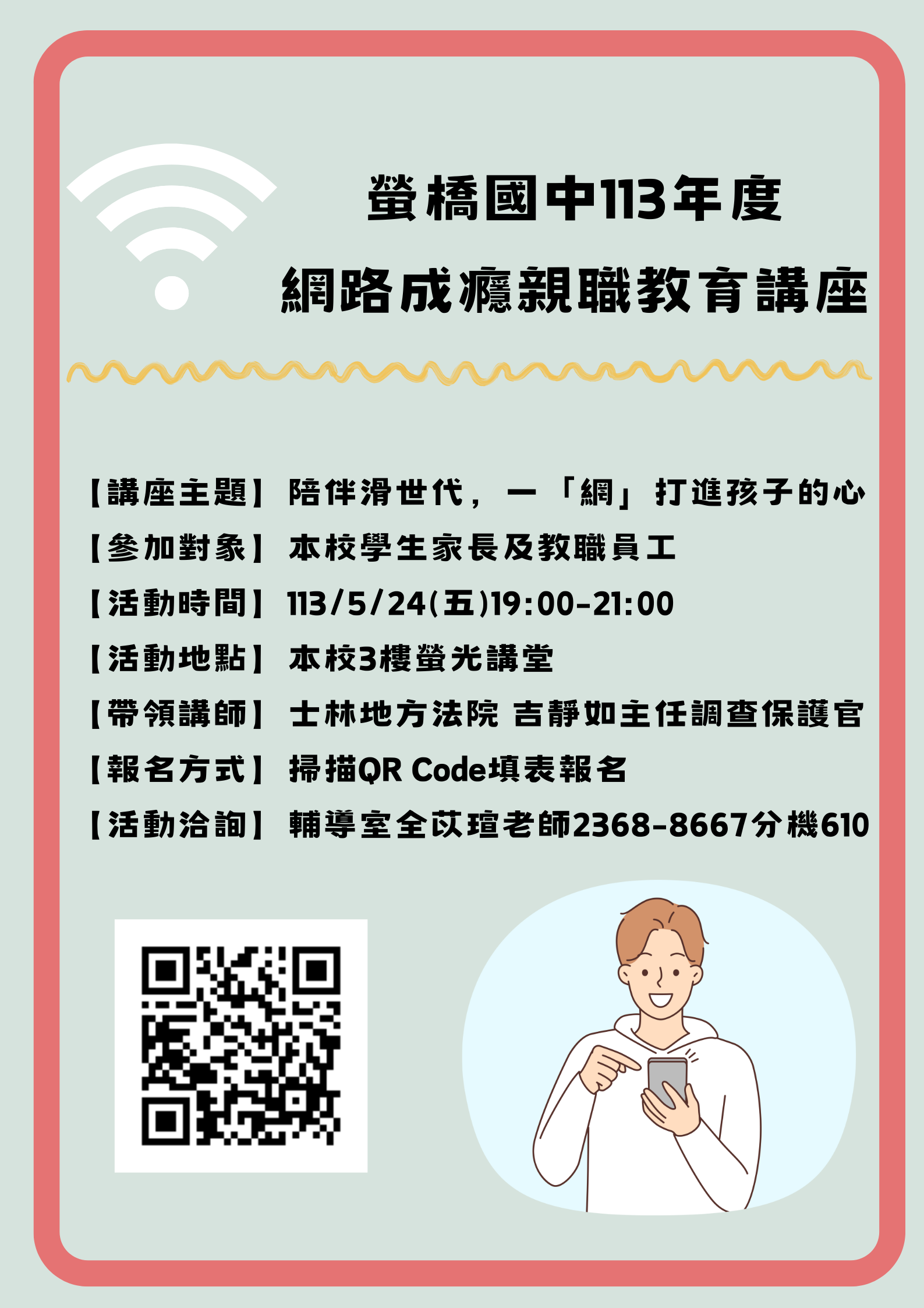 六、報名方式:檢附活動海報(含報名QR Code),為利統計人數 以便安排活動,敬請於5/22(三)前填寫報名表單