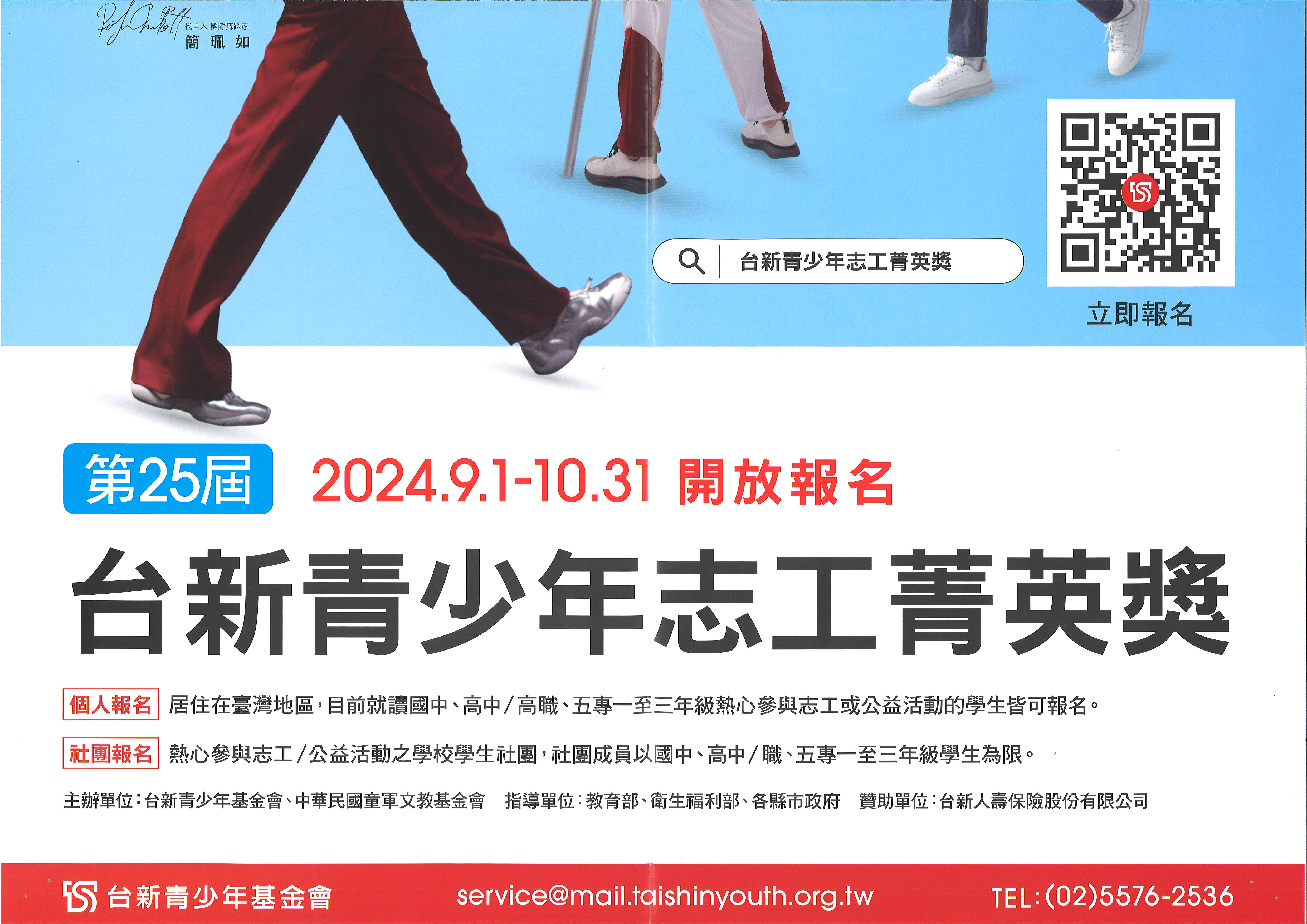 一、旨揭徵件活動採取線上報名,徵件報名時間自113年9月1日 至10月31日上午0時止(報名網址:www.taishinyouth. org.tw/2024apply/)。