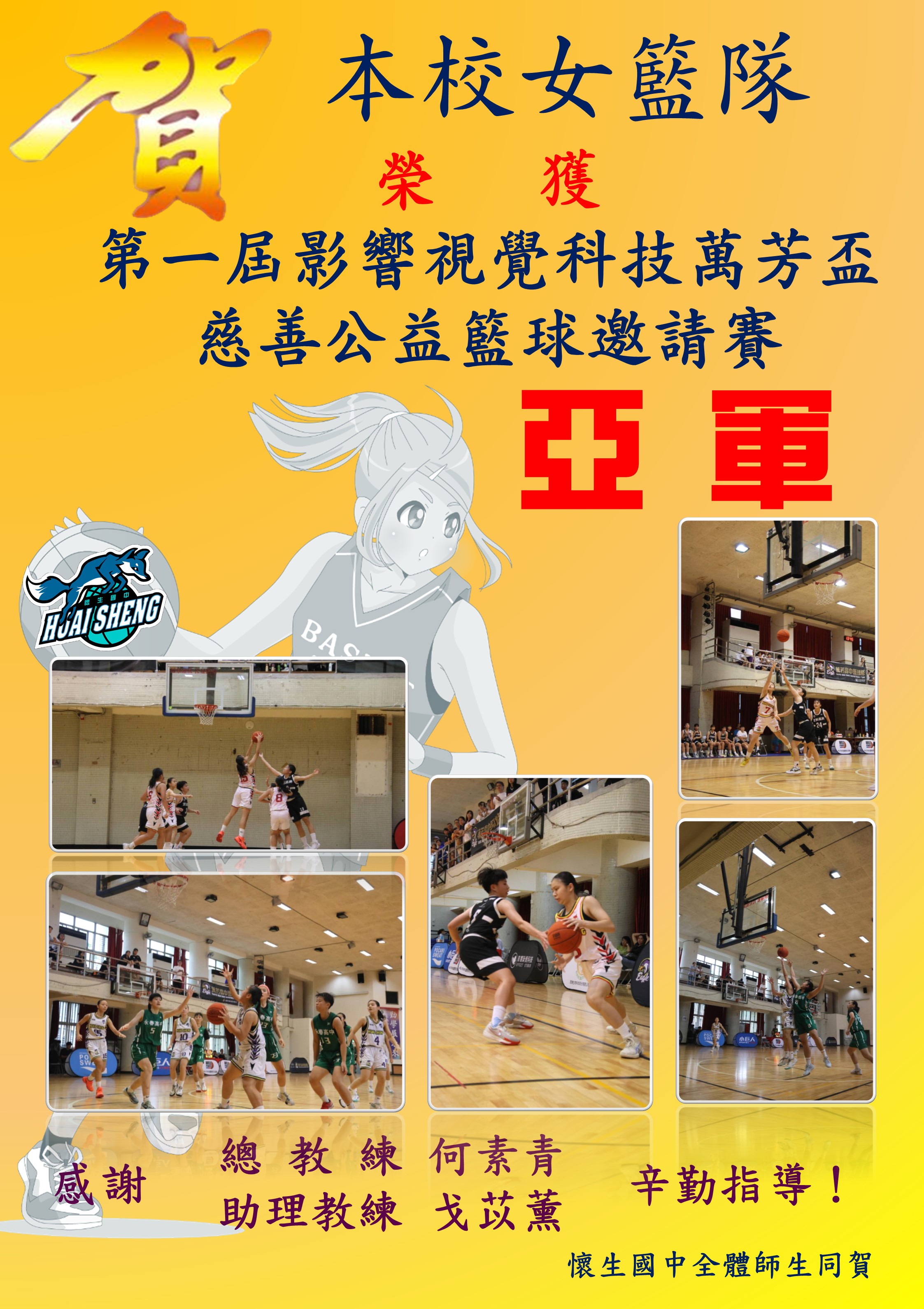 賀!本校女籃隊榮獲『第一屆影響視覺科技萬芳盃慈善公益籃球邀請賽』亞軍。