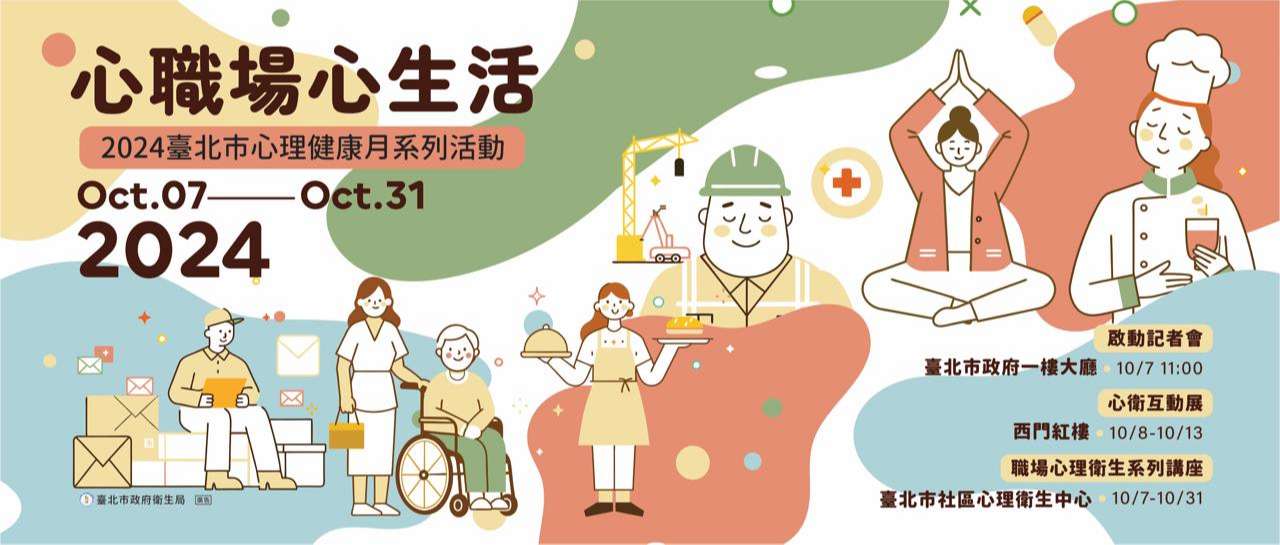 二、本府衛生局近期辦理「2024心理健康月-『心職場心生活』」系列活動,請貴校協助將活動宣傳文字及海報放置於校網、跑馬燈或公告電視牆等地方廣為宣傳。