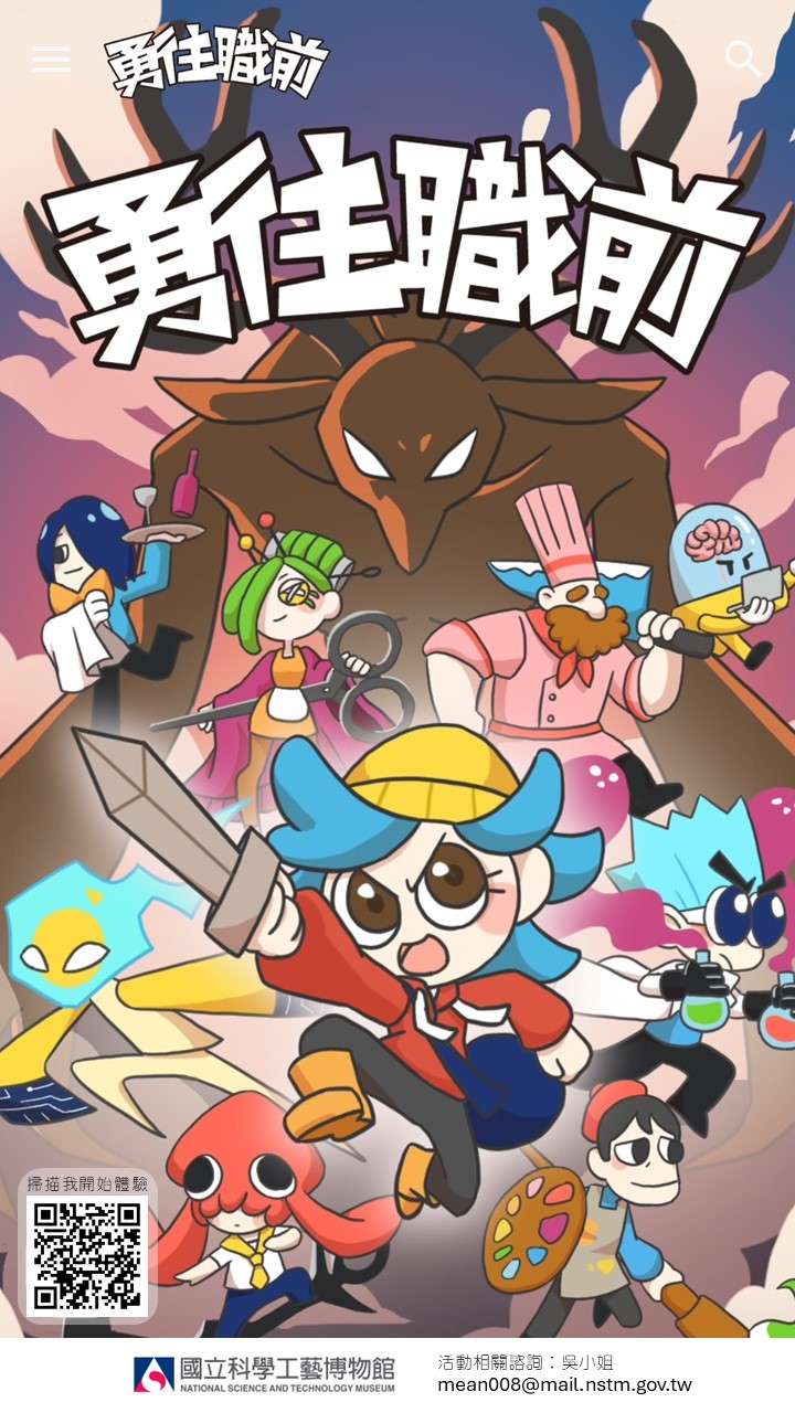 一、為推廣技職教育,本館設置「勇往職前」技職15職群展廳串聯線上學習單,結合常設展示廳參觀及藉此引介技職15職群職涯發展簡介(https://sites.google.com/view/braveinnstm/%E9%A6%96%E9%A0%81),提供學子職涯探索,歡迎來館參觀並多加利用。