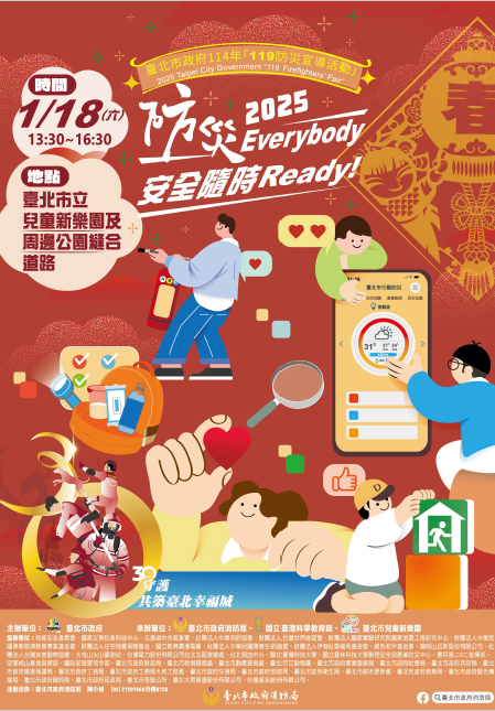1月18日下午兒童新樂園,「防災Everybody 安全隨時Ready!」119防災宣導活動,互動闖關學防災,消防文創手作樂,邀請您全家一起出來玩!