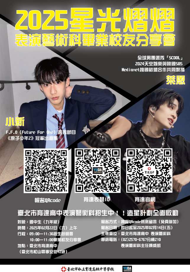 (五)報名網址:https://reurl.cc/eGbyKQ(六) 活動聯絡人:表演藝術科主任陳威凱,如有問題請洽專 線:(02)2570-6767#210