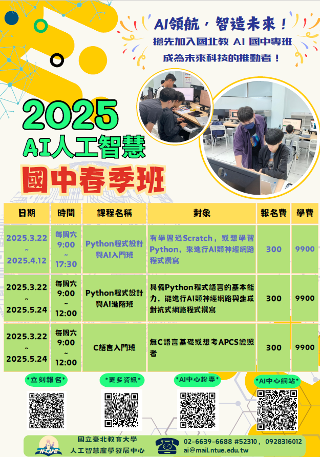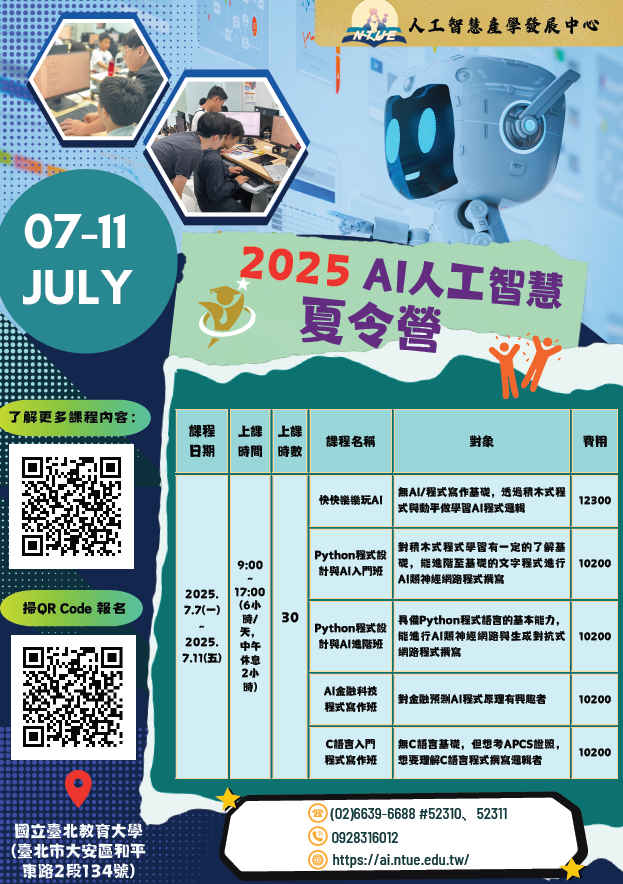 說明:詳情可洽詢人工智慧產學發展中心 (聯絡人:陳先生,電話:02-6639-6688 分機:52310)