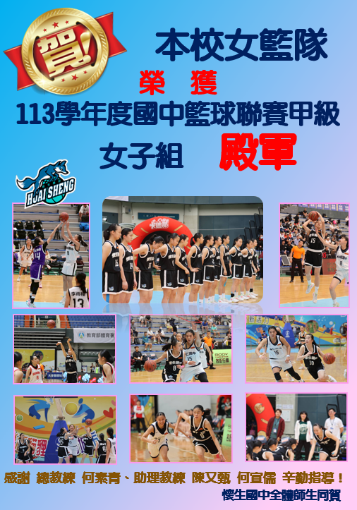 賀!本校女籃隊榮獲『臺北市113學年度國中籃球聯賽甲級女子組』 殿軍。