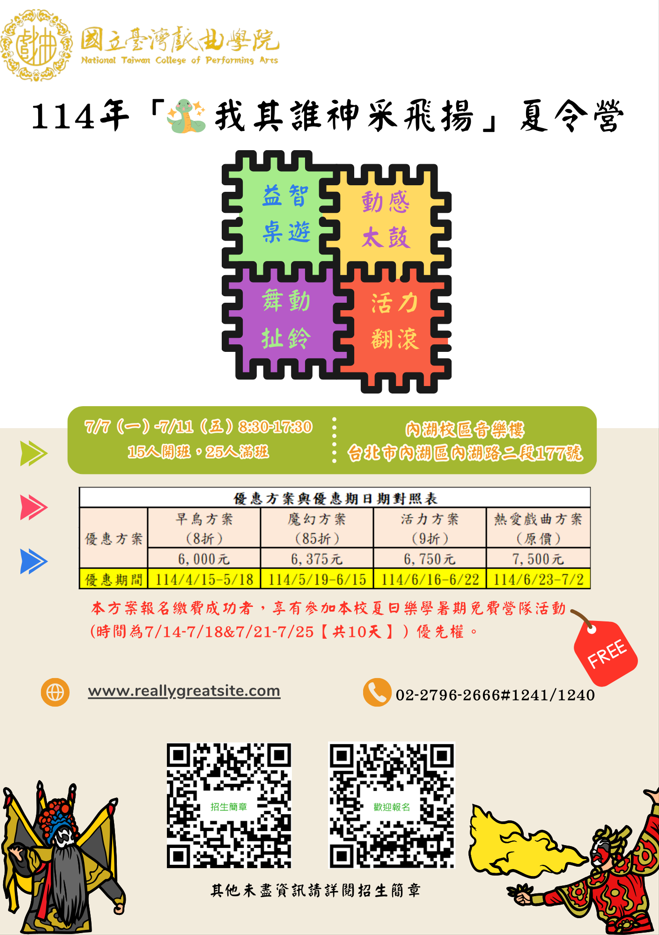 (二)活動地點:國立臺灣戲曲學院內湖校區(台北市內湖區 內湖路二段177號)。