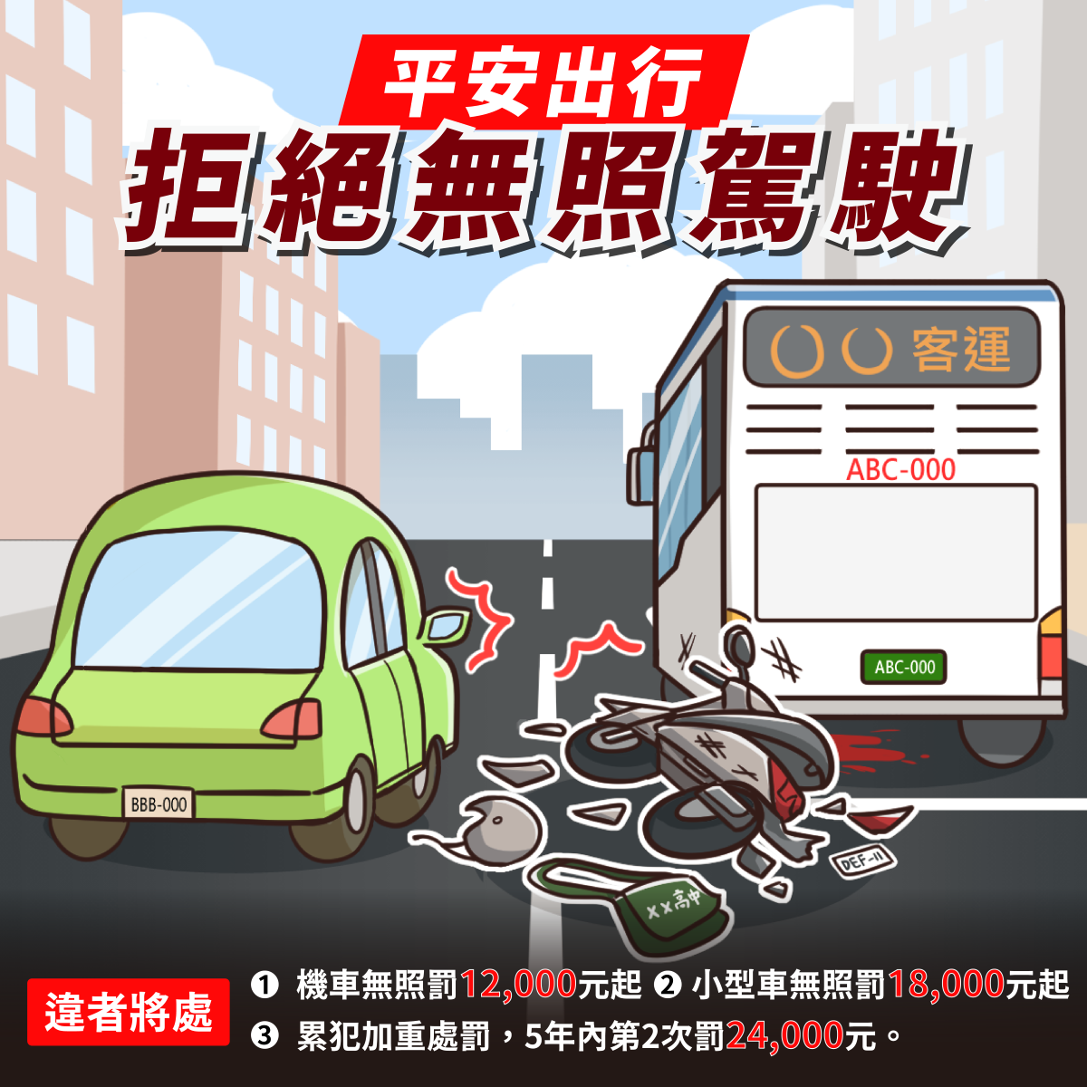 無照駕駛機車,罰12,000元起,累犯加重處罰