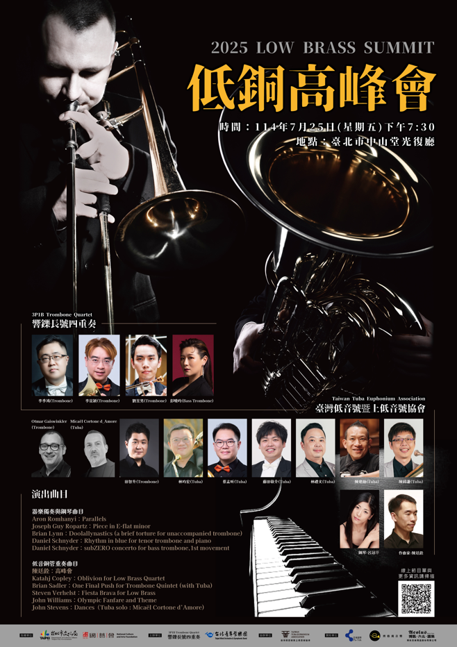 一、由臺灣職業樂團長號首席與國家交響樂團低音長號彭曉昀 老師組成的響鑠長號四重奏,將帶來一連串精彩萬分的長 號獨奏與重奏曲目。更邀請國內外低音號演奏名家一同參 與,是一場不可錯過,精彩萬分的低銅音樂饗宴