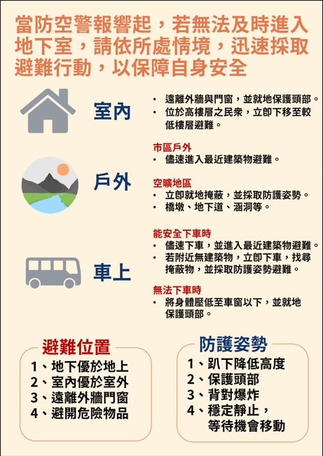 內政部「防空避難指引」圖卡