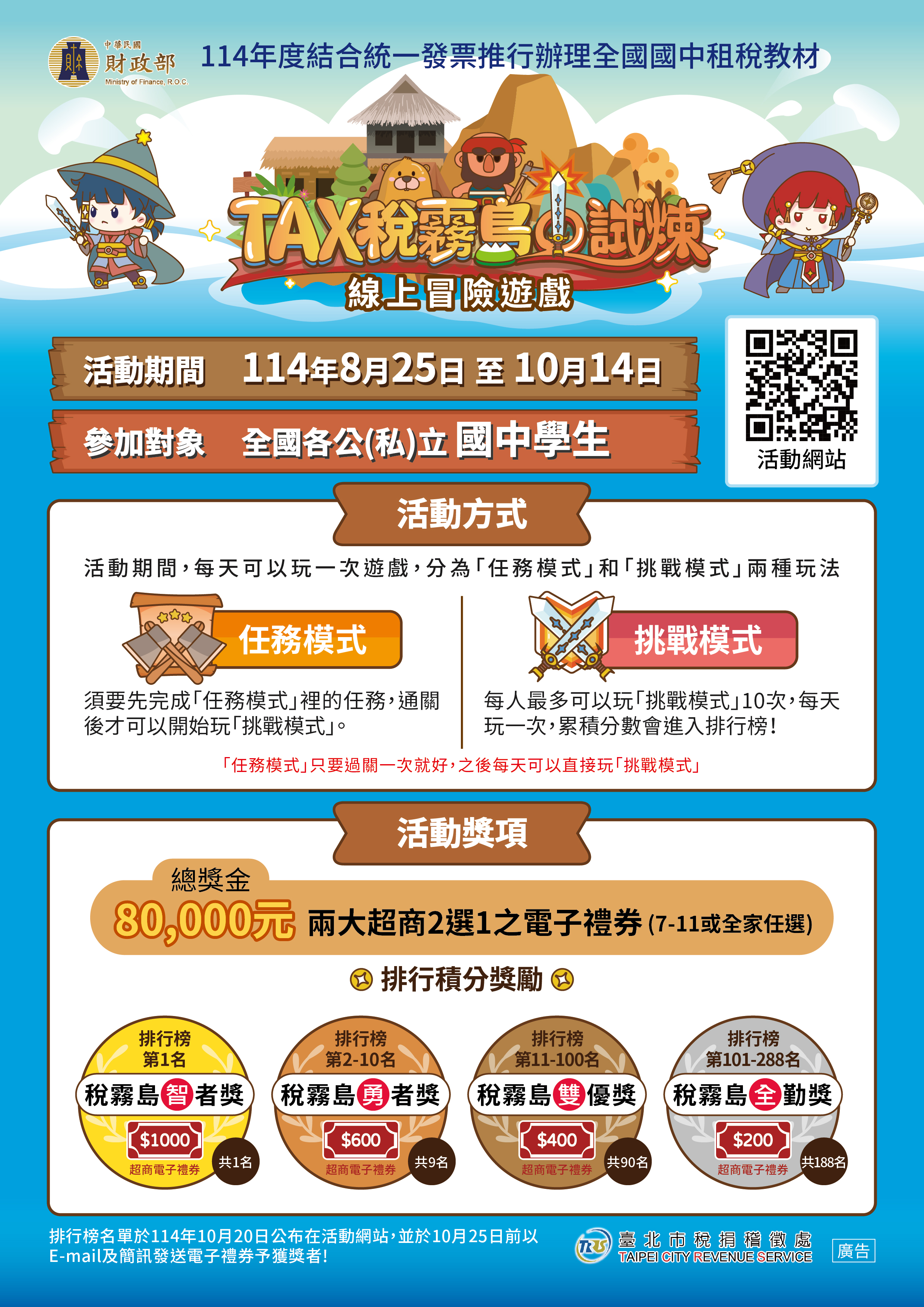 「TAX稅霧島的試煉」線上冒險遊戲,活動網址:https://www.gotax.tw/tax2025/