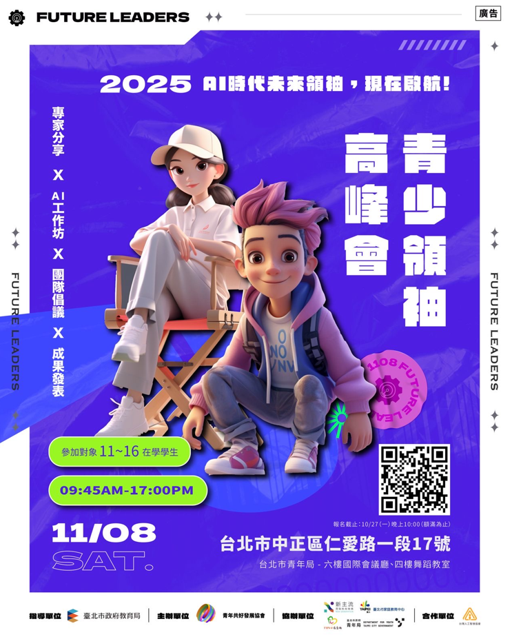 一、旨揭活動旨在引導少年瞭解AI趨勢,提升社會與國際視野 並協助孩子找到自我價值、穩健成長。相關報名資訊如下
